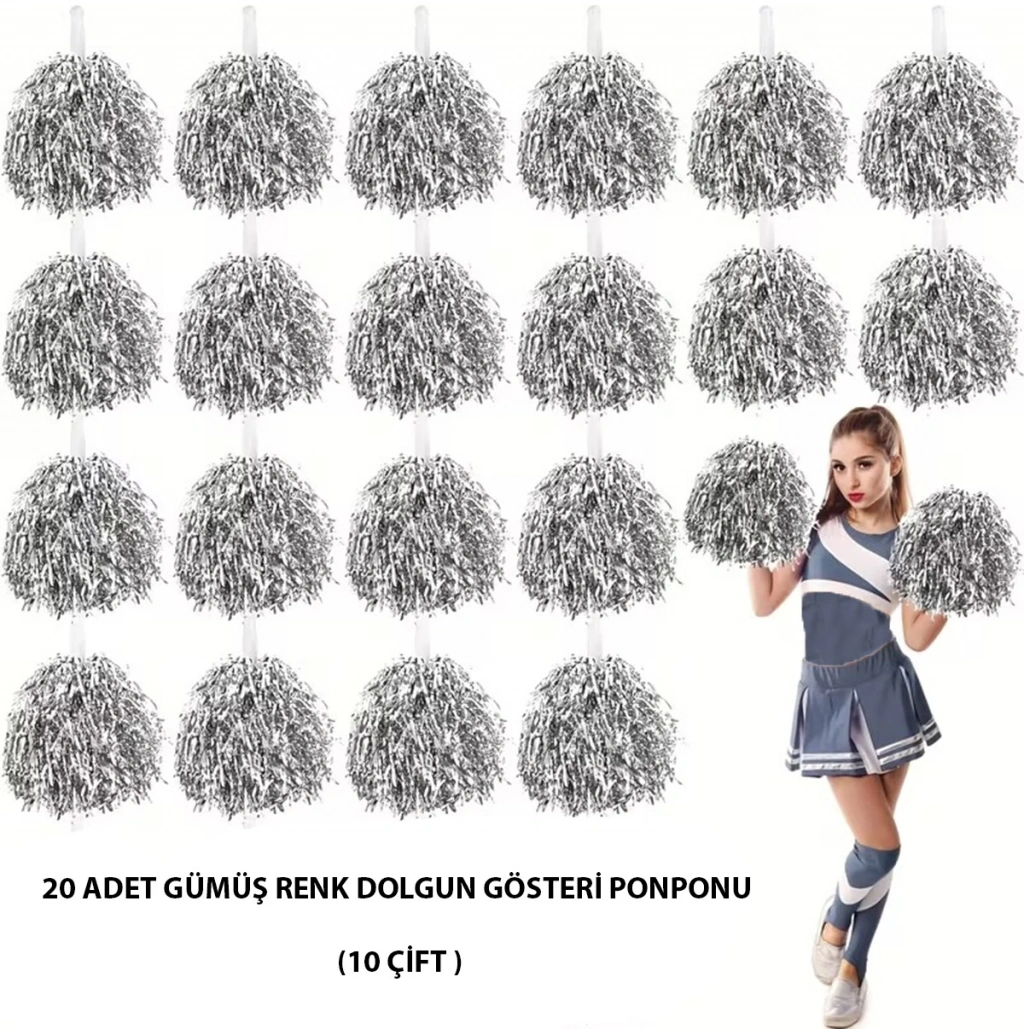 10 Çift ( 20 Adet ) Gümüş Renk 23 Nisan 19 Mayıs 29 Ekim Okul Gösteri Ponponları