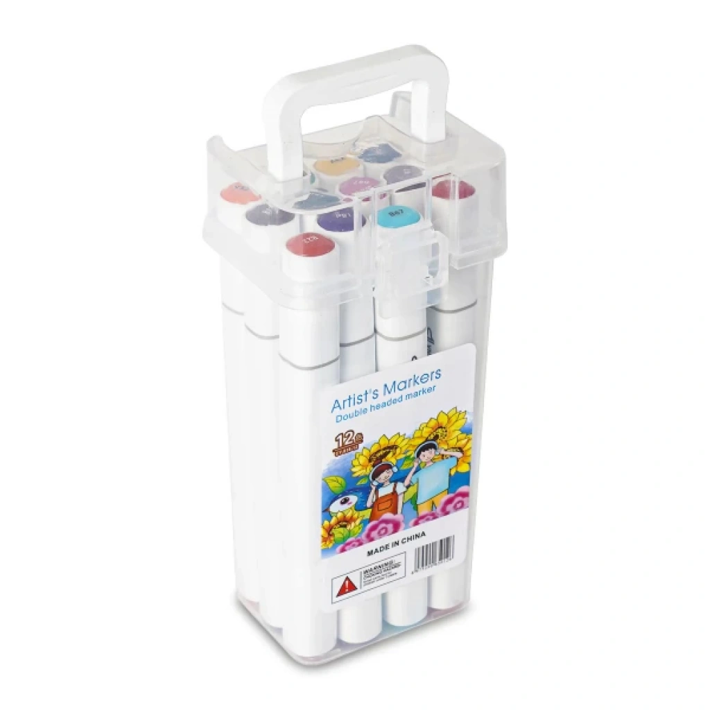 12 PARÇA ÇİFT TARAFLI MARKER BOYA KALEMİÜrün Özellikleri12 Parça Çift Taraflı Marker Boya Kalemi, sanatçıların ihtiyacını karşılayacak şekilde tasarlanmış bir üründür. Her bir kalem, çift taraflı uçlara sahip olup, farklı renk seçenekleriyle çok yönlü kullanım sunar. Plastik kutusu sayesinde kolayca taşınabilir ve düzenli saklanabilir. Her kalem, zengin renk seçenekleri ile çizimlerinize canlılık katacaktır. Kalemler, kaliteli malzemelerden üretilmiş olup, dayanıklı uçları ile uzun süreli kullanım sağlar. Sanatçıların, hobi severlerin ve okul ihtiyaçları için idealdir.Paket İçeriği1 Adet 12 Parça Çift Taraflı Marker Boya Kalemi