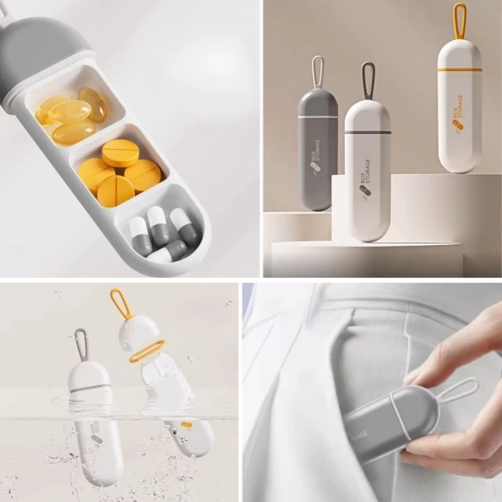 3 BÖLMELİ SEYAHAT TİPİ İLAÇ SAKLAMA KUTUSUÜrün Özellikleri3 bölmeli seyahat tipi ilaç saklama kutusu, günlük ilaç veya vitaminlerinizi düzenli şekilde taşıyabilmeniz için özel olarak tasarlanmıştır. Kompakt ve ergonomik yapısı sayesinde çanta, ceket cebi veya bavulda kolaylıkla taşınabilir. Sağlığa zararlı madde içermeyen kaliteli plastikten üretilmiştir. Sıkı kapanan kapak sistemi, haplarınızı nemden ve dış etkenlerden koruyarak tazeliğini uzun süre muhafaza eder. Suya dayanıklı ve hijyenik yapısı sayesinde seyahatlerde, iş yerinde veya spor çantasına atarak günlük kullanımda pratik bir çözüm sunar. Silinerek ya da elde yıkanarak kolayca temizlenebilir. Şık ve modern kapsül tasarımıyla hem zarif hem de işlevsel bir yardımcıdır.Paket İçeriği1 adet 3 Bölmeli Seyahat Tipi İlaç Saklama Kutusu