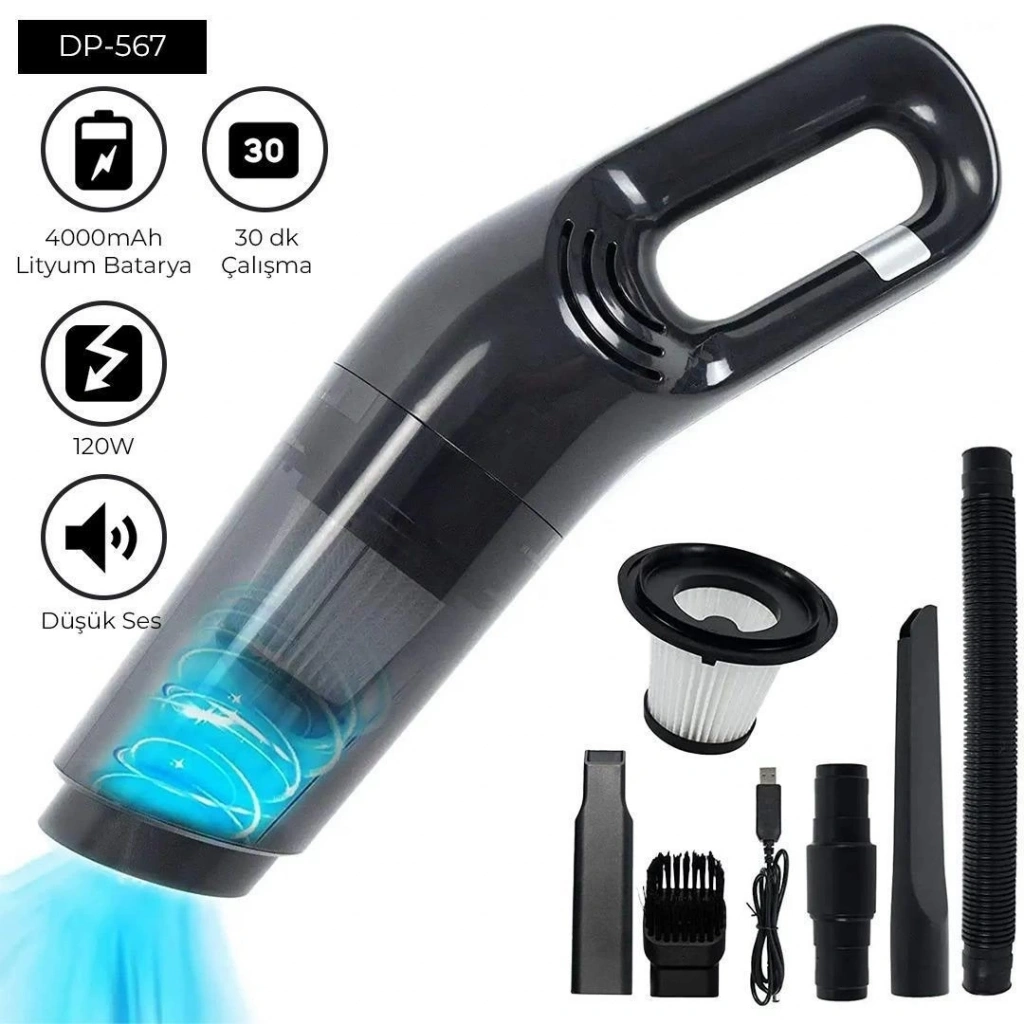 Araç Süpürgesi Şarjlı 120w 20.000pa Göstergeli Yeni Nesil Metal Filtre Extra Vakum Ve Üfleme
