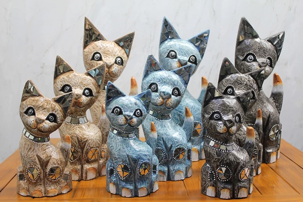 AHŞAP 3'LÜ KEDİ SETİ - 40 CMÜrün ÖzellikleriDoğal ahşaptan üretilmiş 3 farklı boyuttaki kedi figürlü dekoratif set, şık ve zarif tasarımıyla ev ve ofis dekorasyonuna estetik bir dokunuş katar. Set içerisinde 25 cm, 30 cm ve 40 cm boyutlarında üç farklı kedi figürü bulunmaktadır. El işçiliğiyle detaylandırılmış bu özel tasarım, hem klasik hem de modern dekorasyon tarzlarına uyum sağlar. Dayanıklı ve kaliteli ahşap malzemesi sayesinde uzun ömürlüdür. Raf, masa, konsol veya vitrin gibi alanlarda dekoratif kullanım için idealdir.Paket İçeriği1 adet Ahşap 3'lü Kedi Seti 40 cm