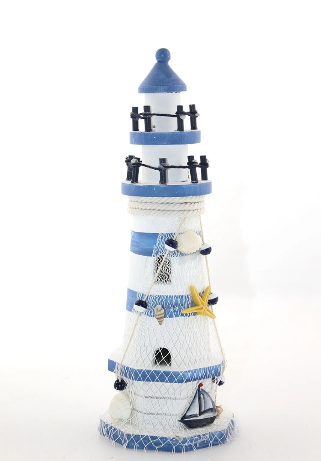 AHŞAP MARİN DENİZ FENERİ MODEL 8Ürün ÖzellikleriAhşap Marin Deniz Feneri Model 8, deniz temalı dekorasyon sevenler için özel olarak tasarlanmış estetik ve zarif bir dekoratif üründür. 30x10 cm ölçülerindeki yapısıyla dikkat çeken bu model, masa, raf veya vitrin gibi alanlarda şık bir görüntü oluşturur. Ahşap malzemeden üretilmiş olup, dayanıklı ve uzun ömürlü kullanım sunar. El işçiliği ile detaylandırılmış mavi ve beyaz renk kombinasyonu, marin temalı mekanlara mükemmel uyum sağlar. Deniz esintisini yaşam alanlarınıza taşıyan dekoratif bir parçadır.Paket İçeriği1 adet Ahşap Marin Deniz Feneri Model 8