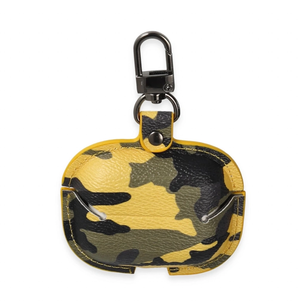 Airpods 3 (3.nesil) Çanta Kamuflaj Deri Kılıf - Sarı
