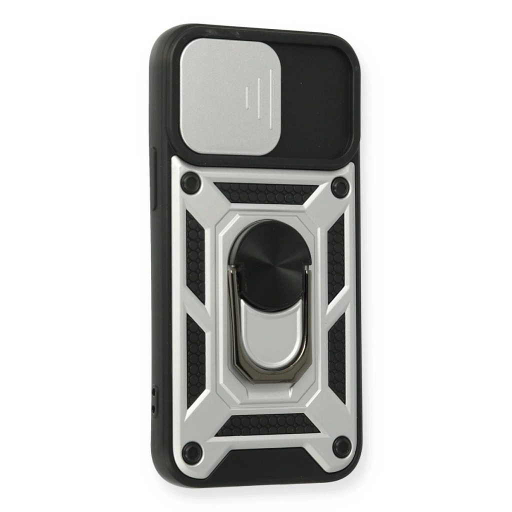 Apple İphone 11 Kılıf Pars Lens Yüzüklü Silikon - Gümüş