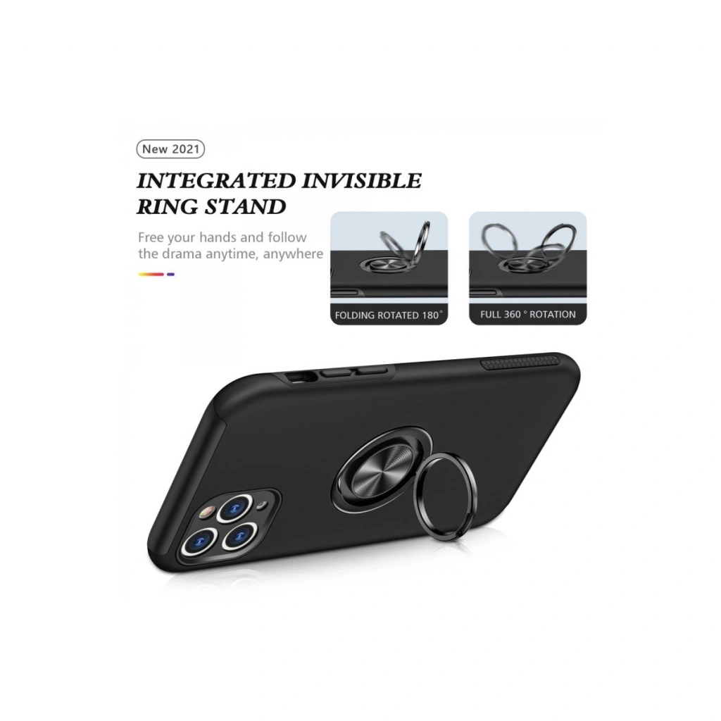 Apple İphone 11 Pro Max Kılıf Elit Yüzüklü Kapak - Siyah