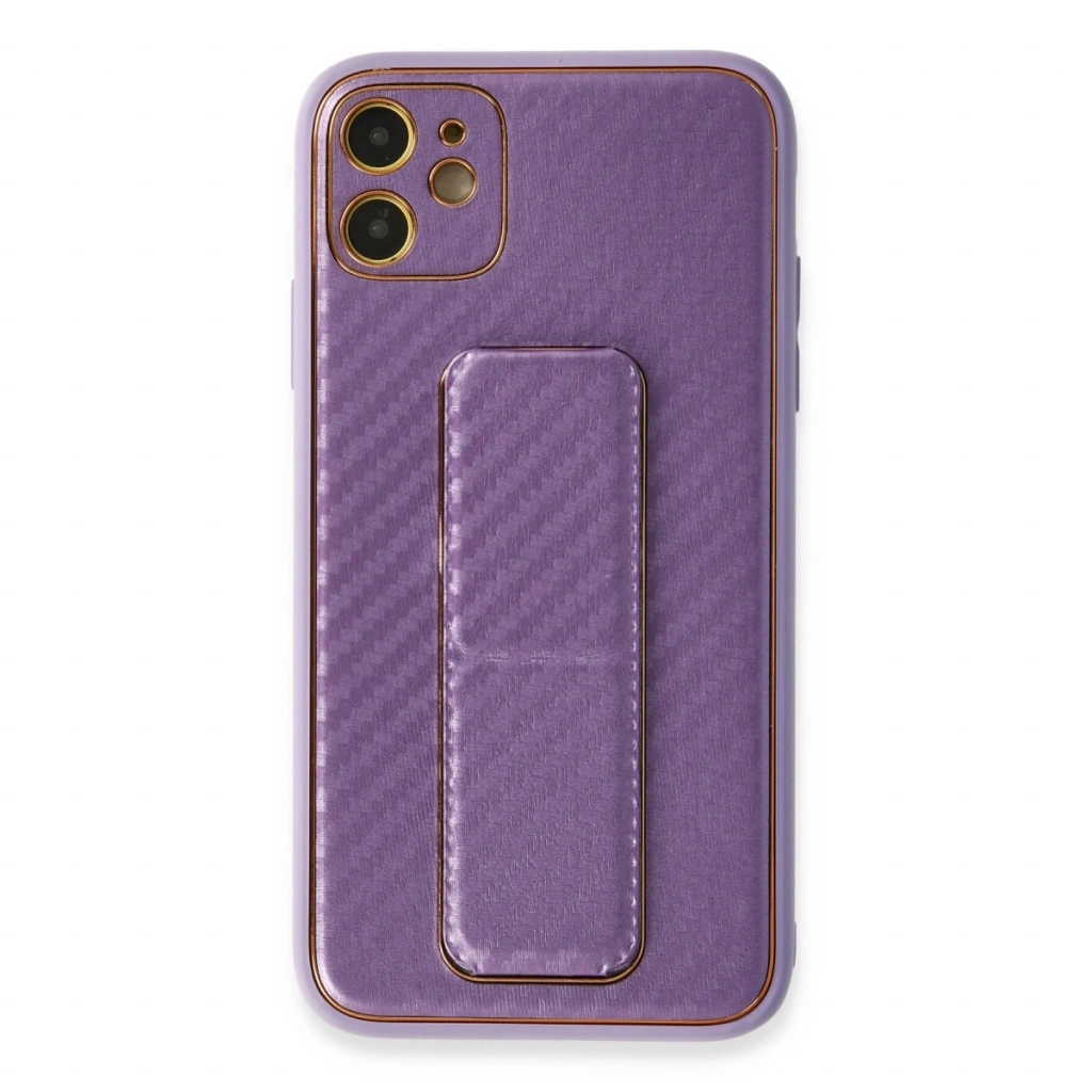 Apple İphone 12 Kılıf Coco Karbon Standlı Kapak - Mor
