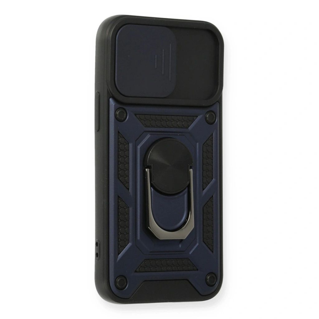 Apple İphone 12 Kılıf Pars Lens Yüzüklü Silikon - Lacivert
