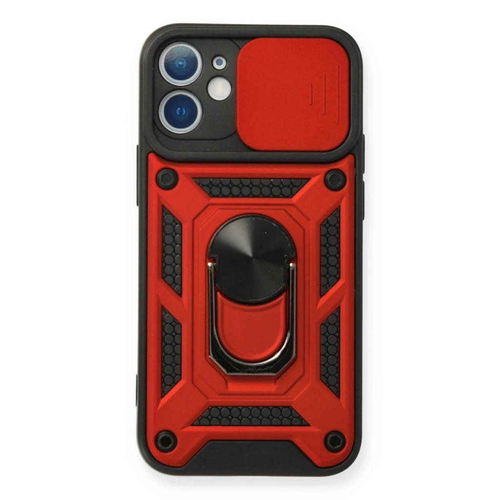 Apple İphone 12 Mini Kılıf Pars Lens Yüzüklü Silikon - Kırmızı