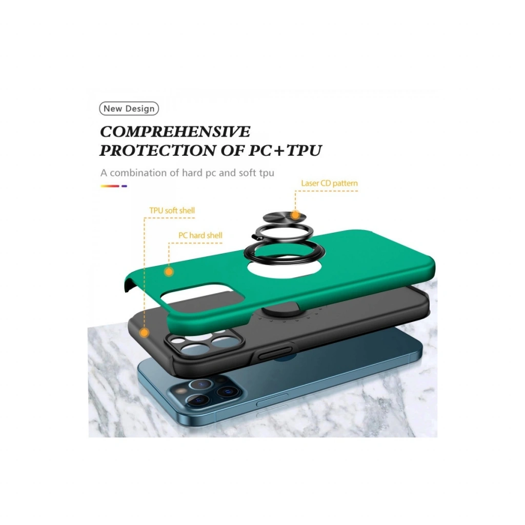 Apple İphone 12 Pro Max Kılıf Elit Yüzüklü Kapak - Yeşil