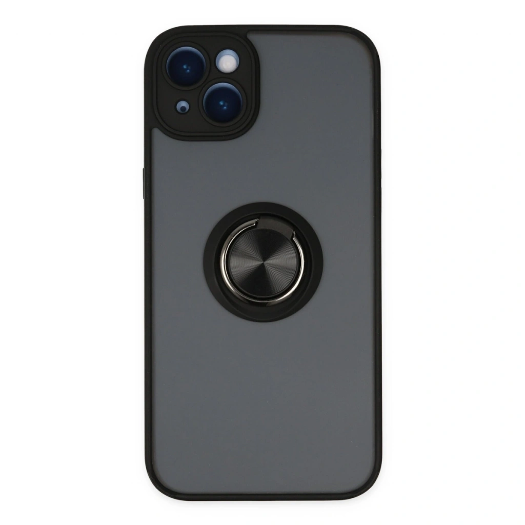 Apple İphone 14 Kılıf Montreal Yüzüklü Silikon Kapak - Siyah