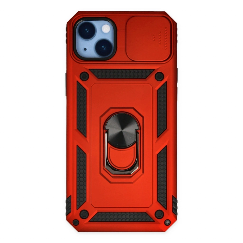 Apple İphone 14 Plus Kılıf Pars Lens Yüzüklü Silikon - Kırmızı