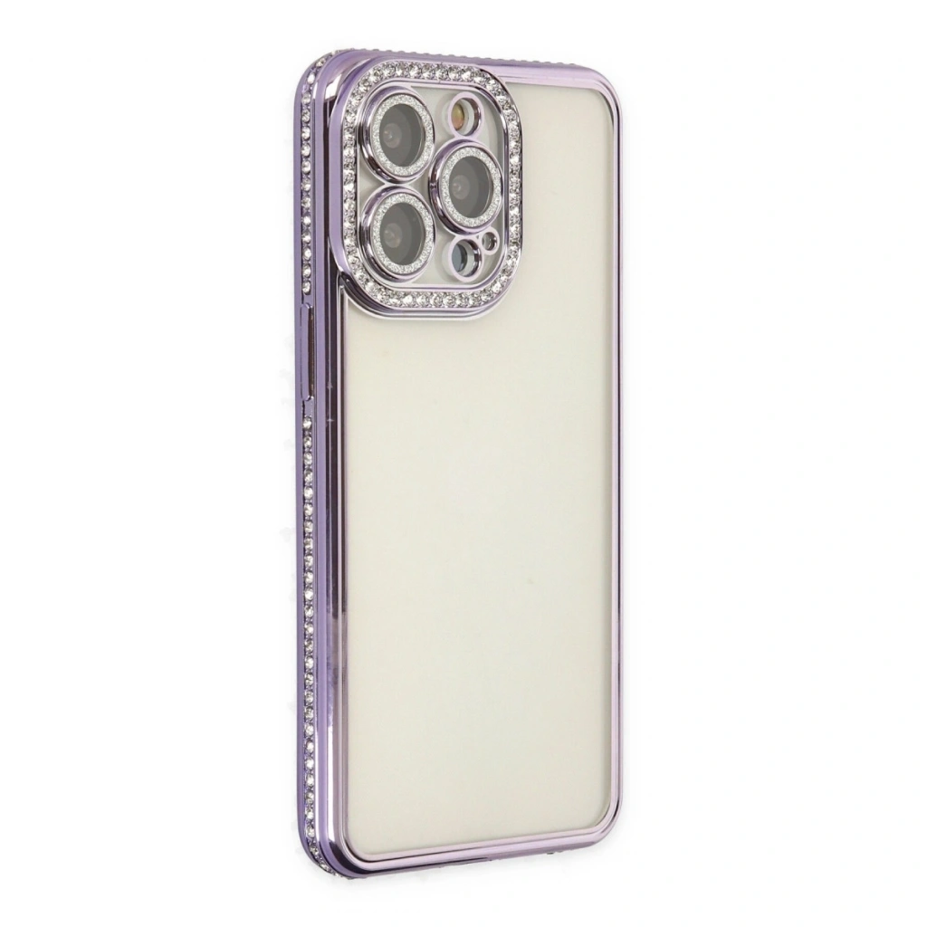 Apple İphone 14 Pro Kılıf Joke Taşlı Silikon - Mor
