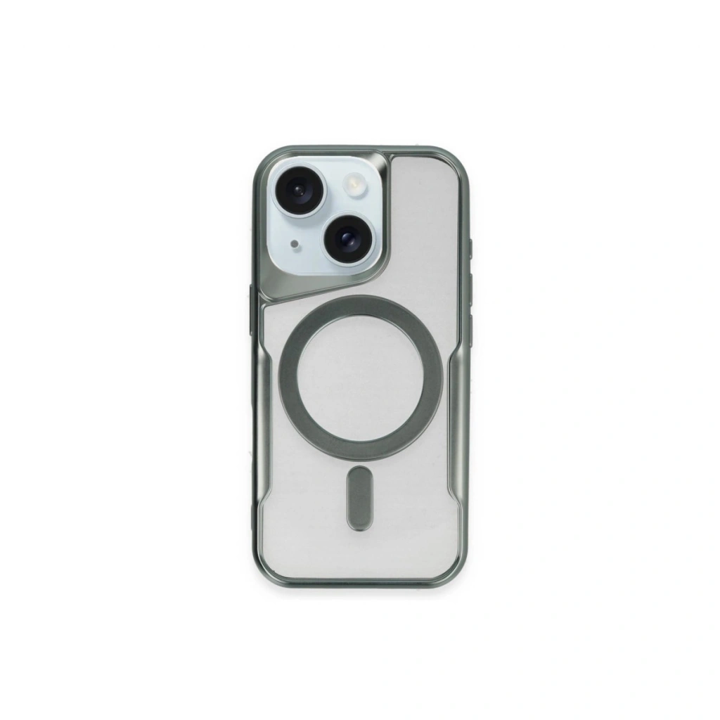 Apple İphone 15 Plus Kılıf Boyi Magsafe Silikon Kapak - Yeşil