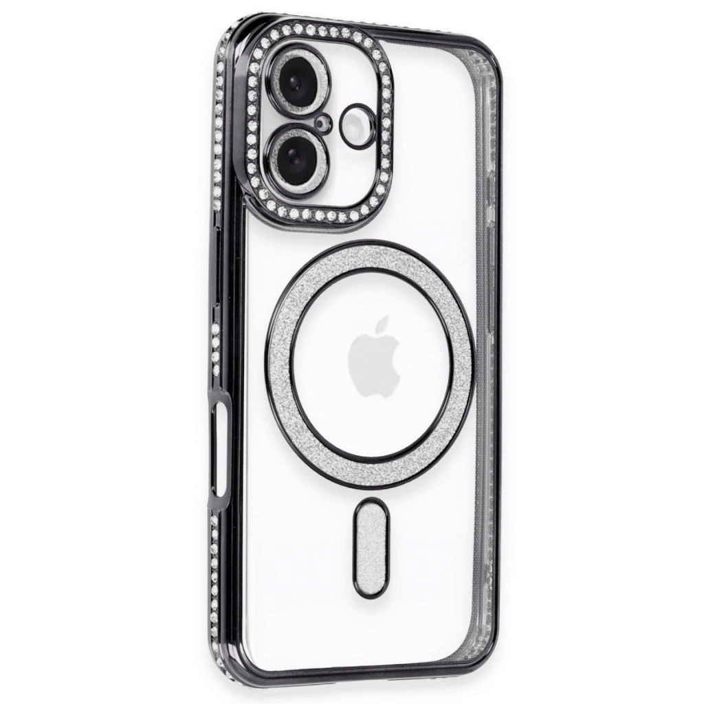 Apple İphone 16 Kılıf Joke Simli Magneticsafe Kılıf - Siyah