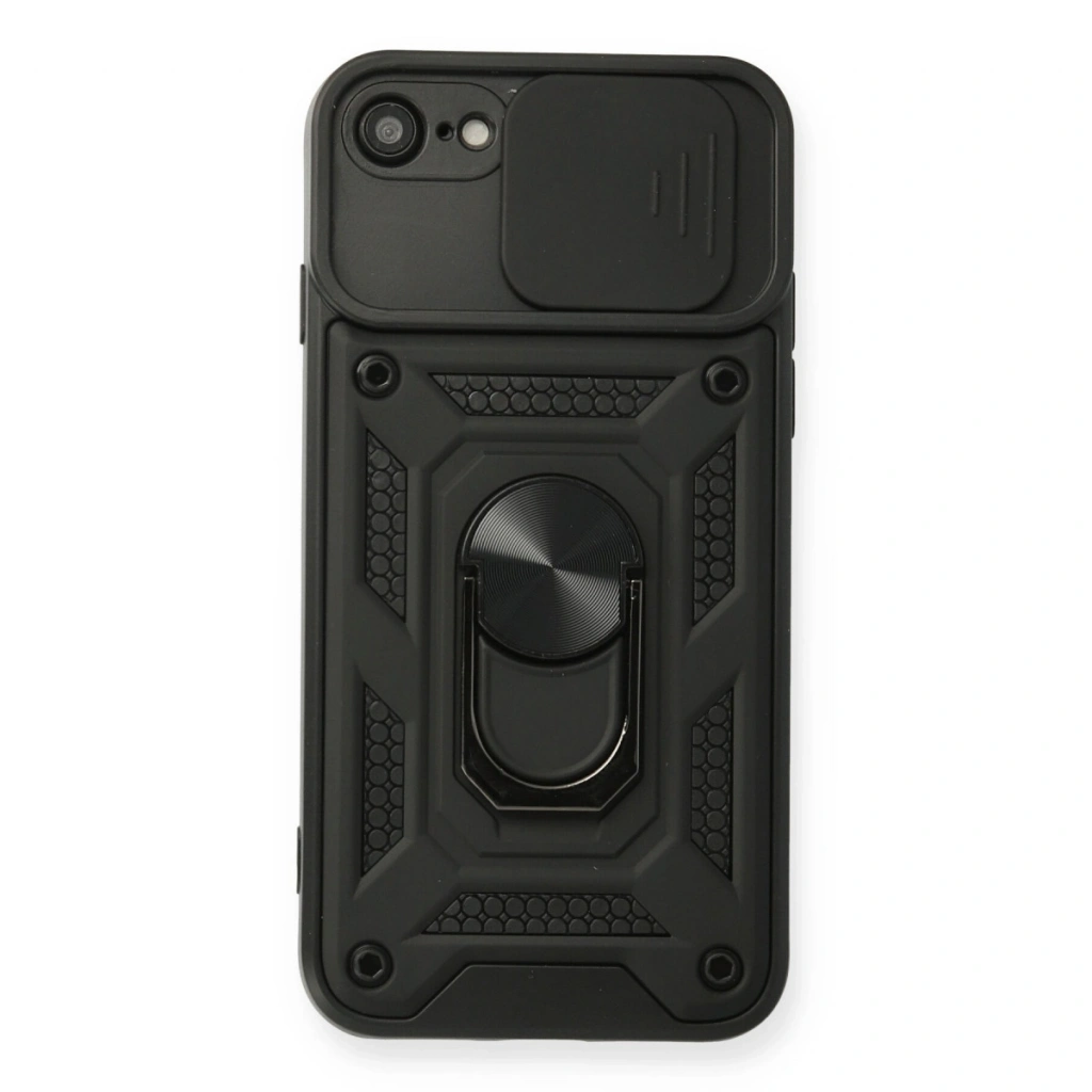 Apple İphone 7 Kılıf Pars Lens Yüzüklü Silikon - Siyah