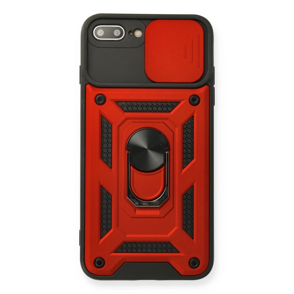 Apple İphone 7 Plus Kılıf Pars Lens Yüzüklü Silikon - Kırmızı