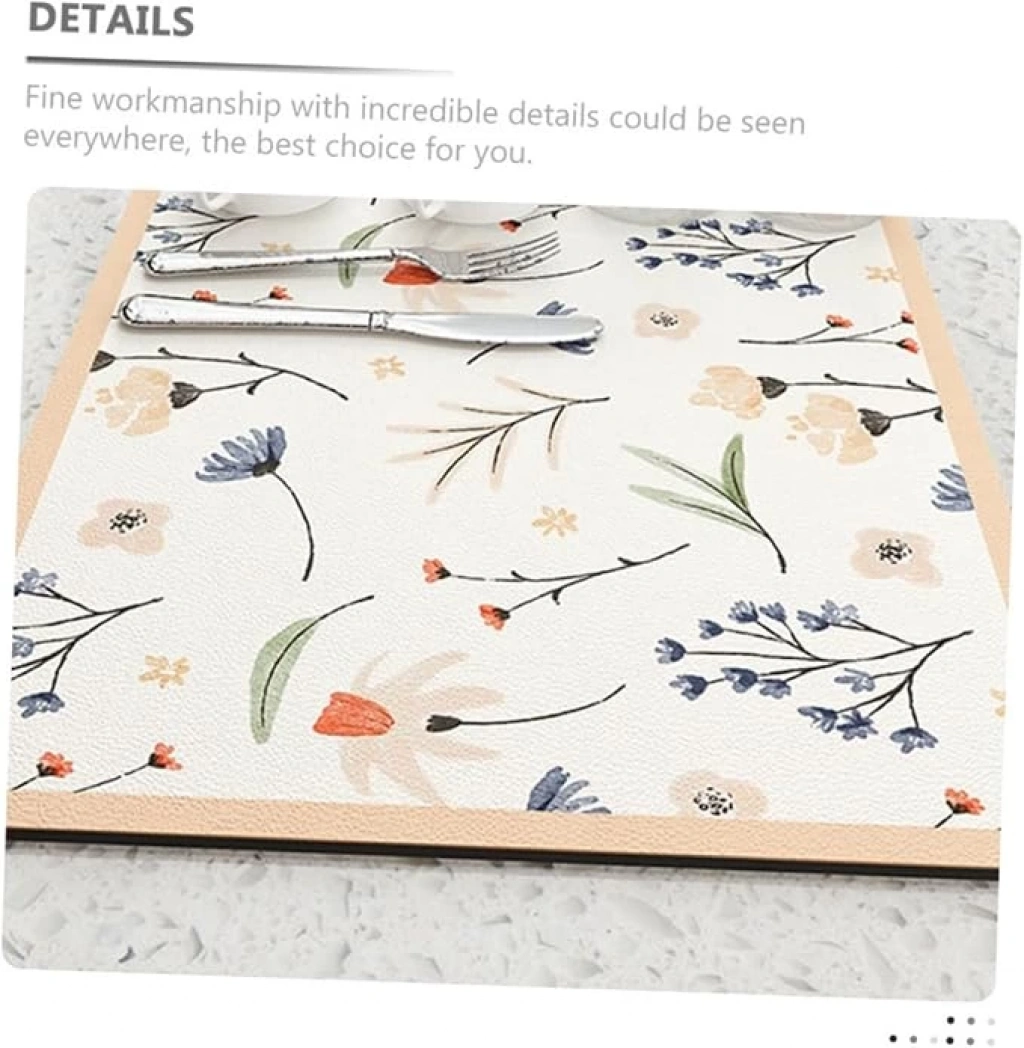 ÇİÇEKLİ KAYMAZ SERVİS MATIMasalarınıza Baharın Tazeliğini TaşıyınÇiçekli Servis Matı, 40x30 cm ölçülerinde ve sadece 0,25 cm inceliğinde, hem zarif hem de işlevsel bir dokunuş sunar. Kaymaz tabanıyla güvenli bir kullanım deneyimi sağlayan bu mat, yüksek kaliteli PVC, diatom sızıntısı, sünger ve kauçuk gibi dayanıklı malzemelerden üretilmiştir. Modern tasarımı, mutfak ve yemek masalarınıza stil katarak dekorasyonunuzu aydınlatır. İnce işçiliği sayesinde uzun süreli kullanım için sağlam ve dayanıklıdır.Kompakt boyutuyla saklaması ve temizlemesi son derece kolay olan bu servis altlığı, mutfağınızda pratik bir yardımcıdır. Zarif çiçek desenleriyle sofralarınıza baharın tazeliğini getirirken, her yemeği keyifli bir deneyime dönüştürür. Bu yıkanabilir ve yeniden kullanılabilir mat, hem şıklığı hem de işlevselliğiyle evinizin vazgeçilmezi olmaya aday. Bu özel servis matıyla, hem masalarınızı koruyun hem de dekorasyonunuza zarif bir dokunuş ekleyin.