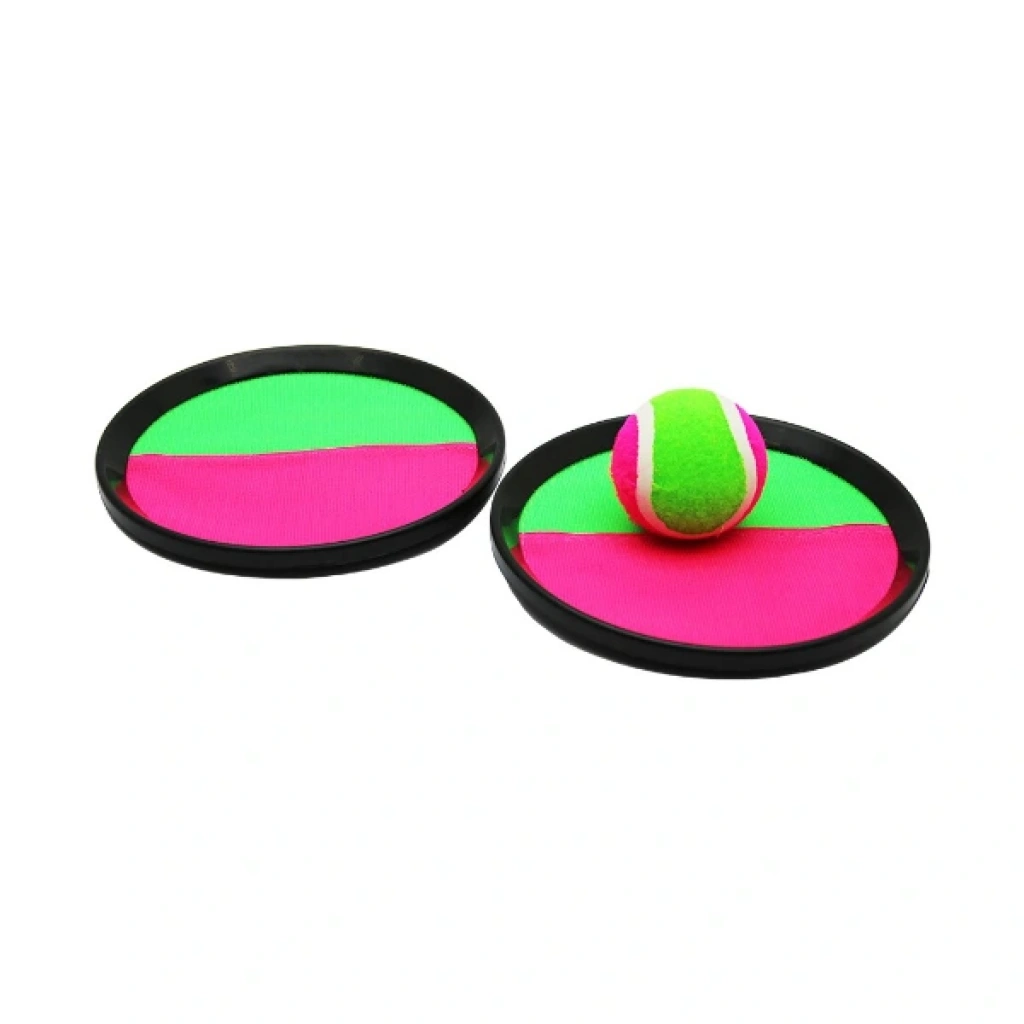 CIRTLI YAPIŞAN TOP OYUNCAK – AT TUT YAKALAÜrün ÖzellikleriCırtlı Yapışan Top Oyuncak Seti, hem çocuklar hem de yetişkinler için eğlenceli ve hareket dolu bir oyun deneyimi sunar. Dayanıklı cırt yüzeyi sayesinde top aparata kolayca yapışır ve oyun boyunca yüksek tutuş performansı sağlar. Açık alanlarda, parkta, sahilde veya bahçede aktif vakit geçirmek için ideal bir tercihtir.El koordinasyonu, refleks gelişimi ve motor becerilerini destekleyen bu set, aile oyunlarında ve çocuk aktivitelerinde keyfi artırır. Hafif yapısı sayesinde kolayca taşınabilir ve her yaş grubuna uygun eğlenceli bir oyundur. 2 kişilik kullanım için tasarlanan set, arkadaşlar ve aile bireyleri arasında rekabetli ve eğlenceli anlar yaratır.Paket İçeriği2 adet cırtlı tutma aparatı1 adet top