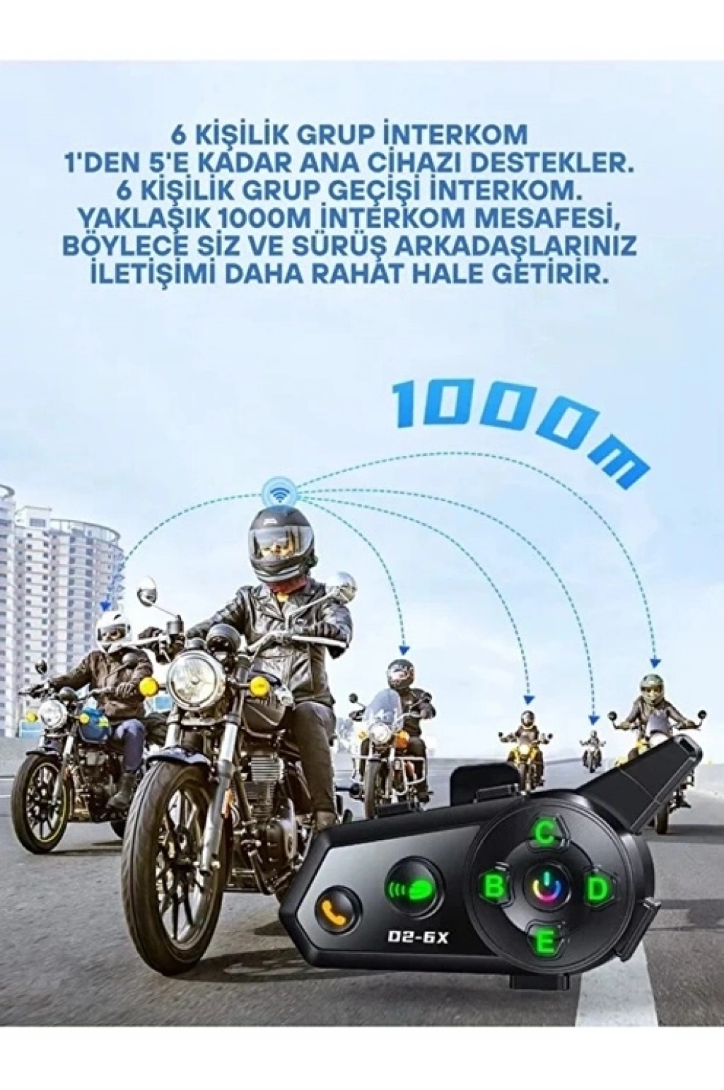 Motosiklet sürüşlerinizde iletişim artık çok daha kesintisiz ve keyifli Gelişmiş teknoloji ile donatılan bu interkom kulaklık, grup sürüşlerinizde veya yol arkadaşlarınızla olan iletişiminizde size 1000 metreye kadar uzun menzilli ve net bir bağlantı imkanı sunar.