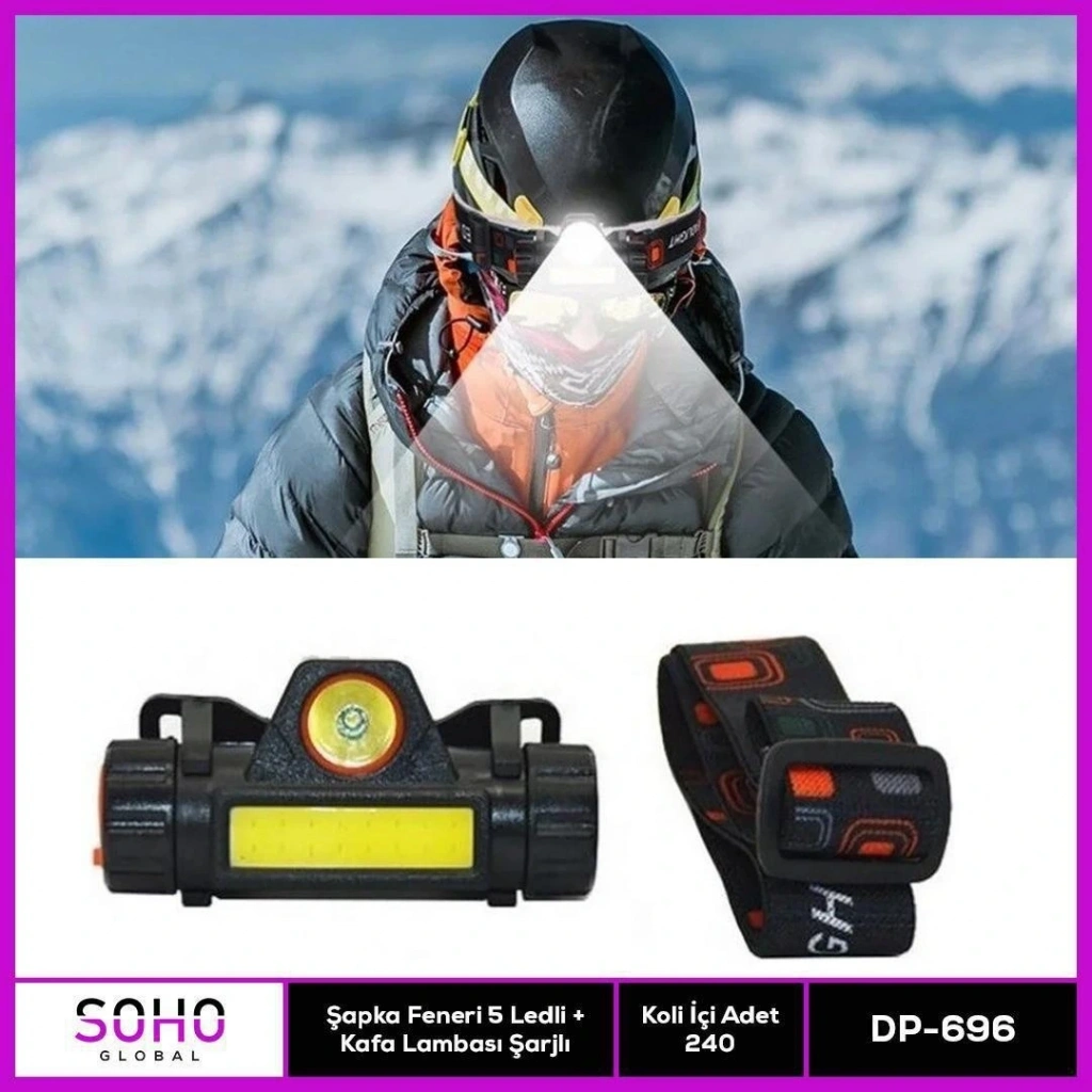 212 Model Şarjlı 5 Led 4 Modlu Cob Led Avcı Balıkçı Kamp Süper Kafa Lambası