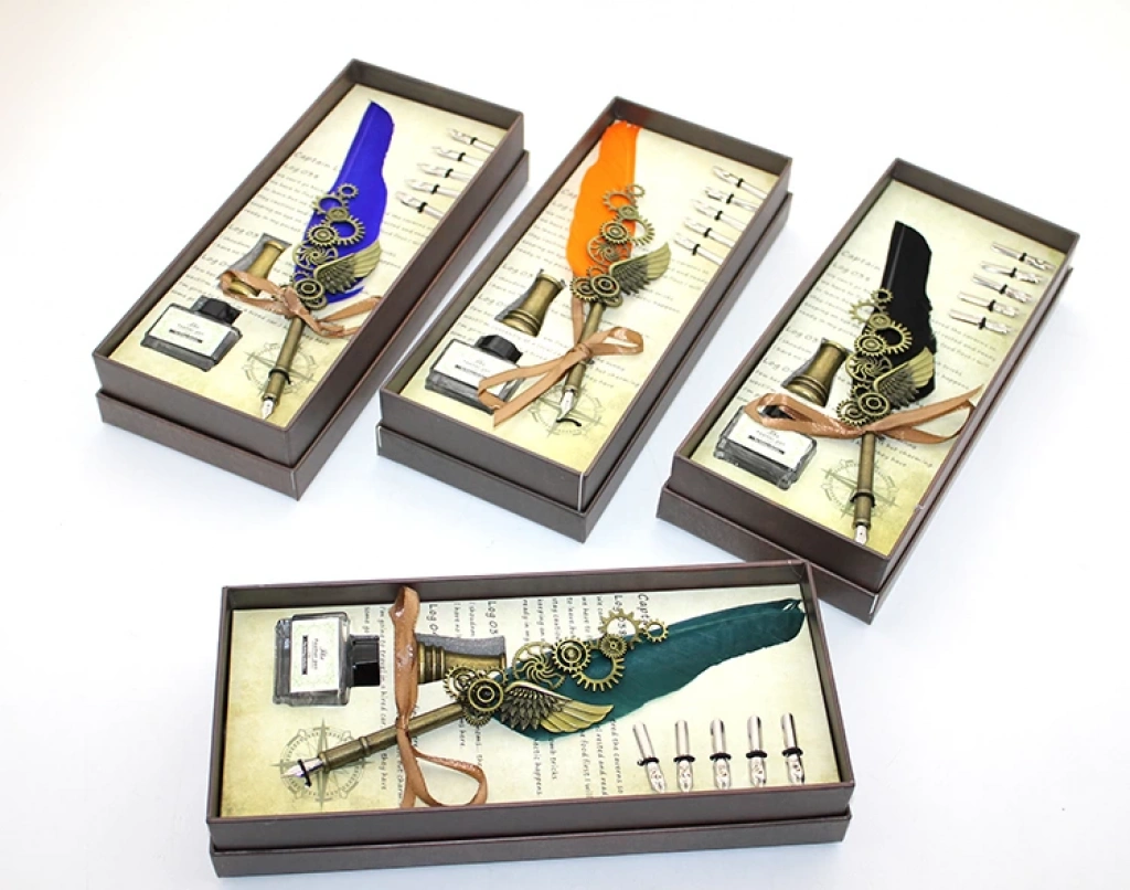 DIVIT HOKKA SETİ MODEL 5Ürün ÖzellikleriDivit Hokka Seti Model 5, renkli tasarımı ve zarif işleme detaylarıyla hem estetik hem de işlevsel bir yazı setidir. Tüy divit, dikkat çekici renkli tasarımı ve ince işçilikle süslenmiş detaylarıyla yazı yazmayı daha keyifli hale getirir. Hokka, mürekkebinizi düzenli ve şık bir şekilde saklamanıza olanak tanır. Klasik ve zarif tasarımı, bu seti dekoratif bir masa aksesuarı ve aynı zamanda özel bir hediye seçeneği haline getirir. Koleksiyon severler ve geleneksel yazı sanatlarına ilgi duyanlar için mükemmel bir seçimdir.Not: Ürün farklı renklerde mevcuttur ve stok durumuna göre karışık gönderim yapılmaktadır.Paket İçeriği1 adet Divit Hokka Seti Model 5