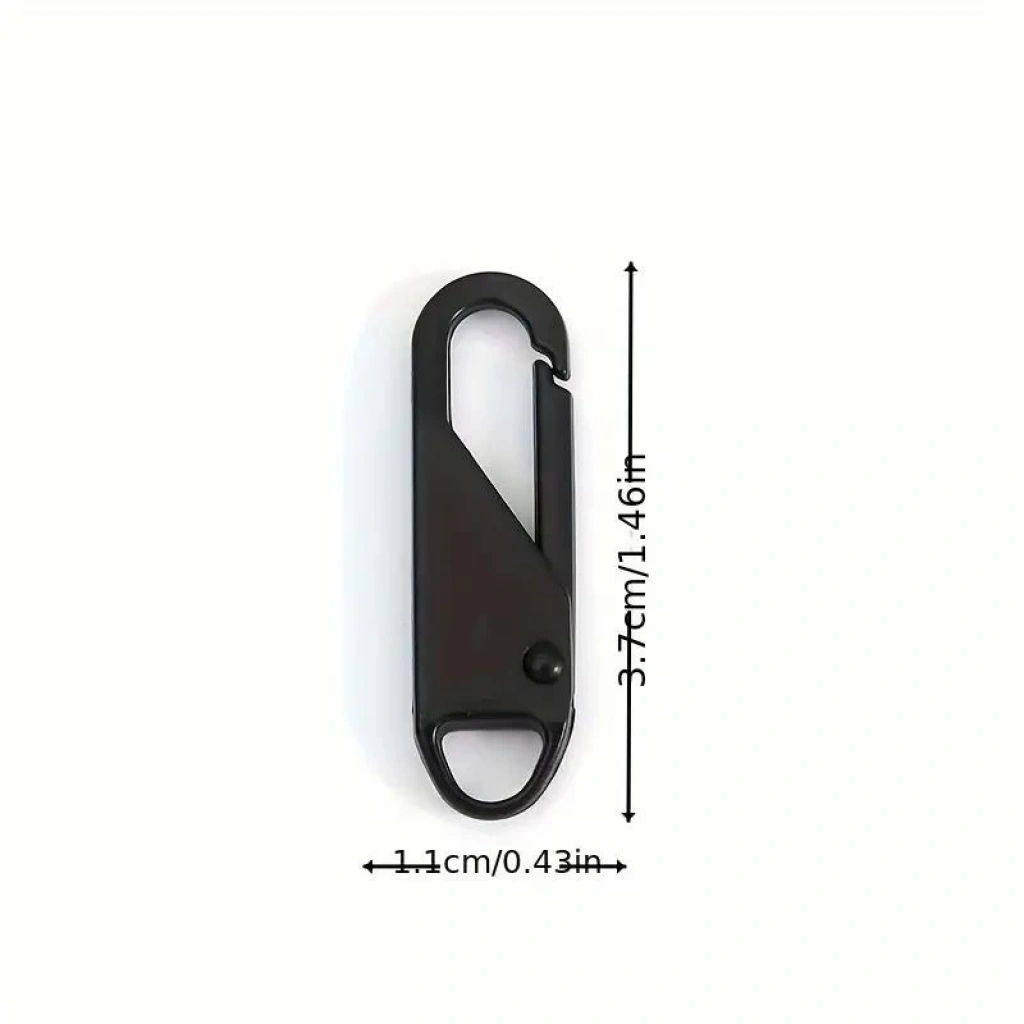 Fermuar başlıklı karabina kilit: Fermuar sürgüsü, fermuarın bir tarafında bir baskı ile sabitlenir, bu da fermuarı fazla çaba harcamadan onarmak için daha iyi bir çözümdür