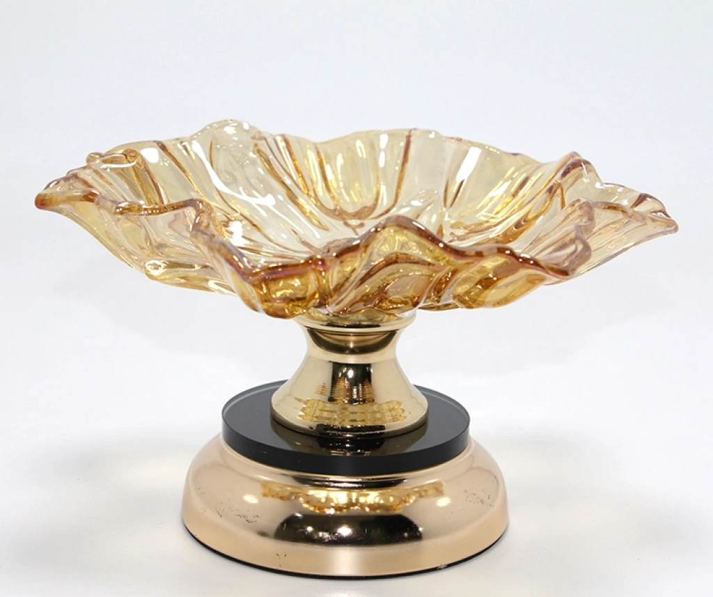 Gold Detaylı Ayaklı Dekoratif Cam SunumlukSunumlarınıza altın dokunuşu yapın! Gold Detaylı Ayaklı Dekoratif Cam Sunumluk, klasik cam işçiliğini modern gold detaylarla birleştirerek sofralarınıza prestij katıyor. 21 x 12 x 11.5 cm boyutlarındaki ideal yapısı, onu hem şık bir ikramlık hem de estetik bir dekorasyon parçası haline getiriyor. Kristal berraklığındaki cam haznesi ve altın sarısı ayak tasarımıyla, en sade sunumları bile birer sanat eserine dönüştürür. Lokum, çikolata, çerez veya dekoratif objeleri sergilemek için mükemmel bir seçimdir.Ürün Özellikleri
