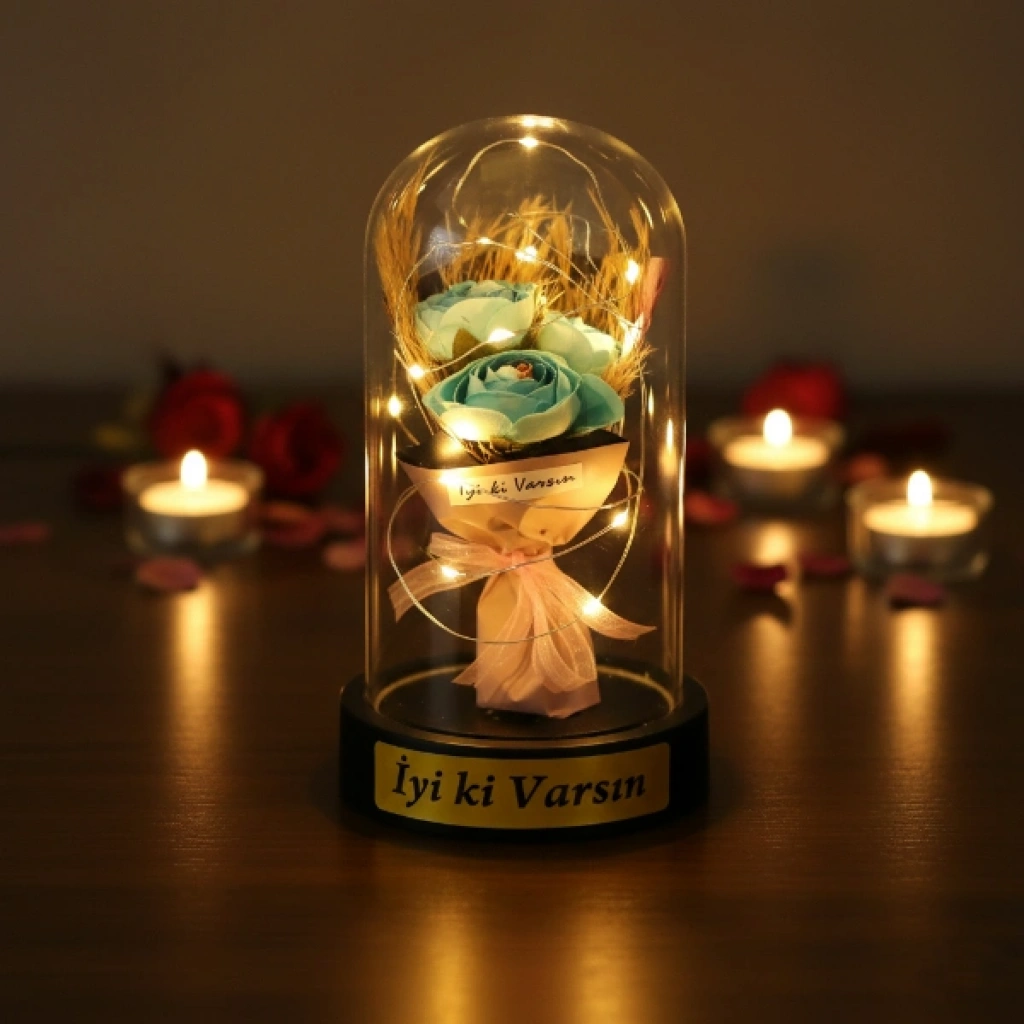GÜL BUKETİ LEDLİ FANUSÜrün ÖzellikleriGül buketi ledli fanus, zarif tasarımı ve romantik duruşuyla yaşam alanlarına sıcak ve estetik bir ambiyans kazandıran dekoratif bir üründür. Şeffaf fanus içerisinde yer alan üç güllü buket tasarımı, bütüncül ve şık bir görünüm sunarak ürünü klasik fanus modellerinden ayırır. Sahip olduğu gün ışığı LED aydınlatma, yumuşak ve göz yormayan ışık yapısıyla masa, komodin ve raf üzerinde huzurlu bir atmosfer oluşturur. LED ışıkların fanus içerisinde dengeli şekilde yayılması, ürünü hem gündüz dekoru hem de akşam saatlerinde etkileyici bir gece aksesuarı haline getirir. Kompakt ölçüsü sayesinde yer kaplamadan kullanılabilen bu model, sevgililer günü, doğum günü ve yıl dönümü gibi özel anlarda romantik hediyelik fanus arayanlar için ideal bir tercihtir. Model seçimi yapılamayan ürün, görsellerde yer alan tasarımlardan biri olacak şekilde karışık model gönderimi yapılmaktadır.Ürün Teknik Özellikleri Özellik Açıklama Ürün Adı Gül Buketi Ledli Fanus Boyut 10 x 18 cm Aydınlatma Gün ışığı LED Tasarım Şeffaf fanus, üç güllü buket Model Karışık gönderilir Kullanım Alanı Masa, komodin, raf Kullanım Amacı Dekoratif ve hediyelik Paket İçeriği1 adet üç güllü gül buketi ledli fanus