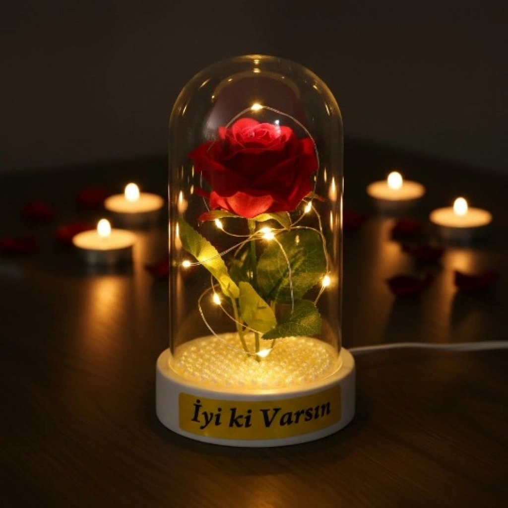 İNCİLİ LEDLİ GÜL FANUSÜrün Özellikleriİncili ledli gül fanus, zarif detayları ve sıcak ışık etkisiyle yaşam alanlarına romantik bir ambiyans kazandıran dekoratif bir üründür. Şeffaf fanus içerisinde yer alan tekli yapay gül, taban kısmındaki inci detaylarıyla estetik bir bütünlük sunar. Sahip olduğu gün ışığı LED aydınlatma sayesinde yumuşak ve huzur verici bir ışık yayarak masa, komodin ve raf üzerinde şık bir görünüm oluşturur. Kompakt ölçüsüyle yer kaplamadan kullanılabilen bu model, özel günlerde romantik dekoratif fanus arayanlar için ideal bir tercihtir. Model seçimi yapılamayan ürün, görsellerde yer alan tasarımlardan biri olacak şekilde karışık model gönderimi yapılmaktadır. Özellik Açıklama Ürün Adı İncili Ledli Gül Fanus Boyut 10 x 18 cm Aydınlatma Gün ışığı LED Tasarım Şeffaf fanus, tekli gül Detay Taban kısmında inci süsleme Model Karışık gönderilir Kullanım Alanı Masa, komodin, raf Kullanım Amacı Dekoratif ve hediyelik Paket İçeriği1 adet incili ledli gül fanus