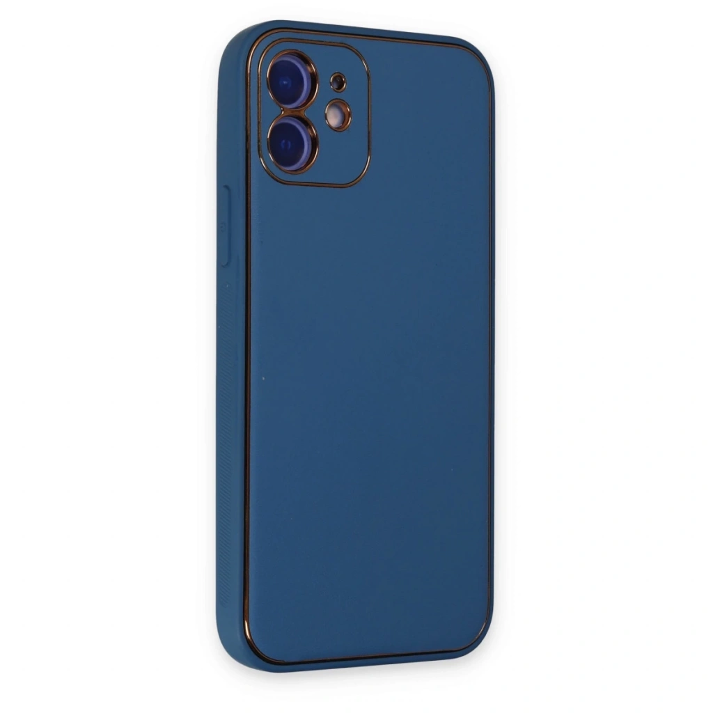 İphone 12 Kılıf Coco Deri Silikon Kapak - Açık Mavi