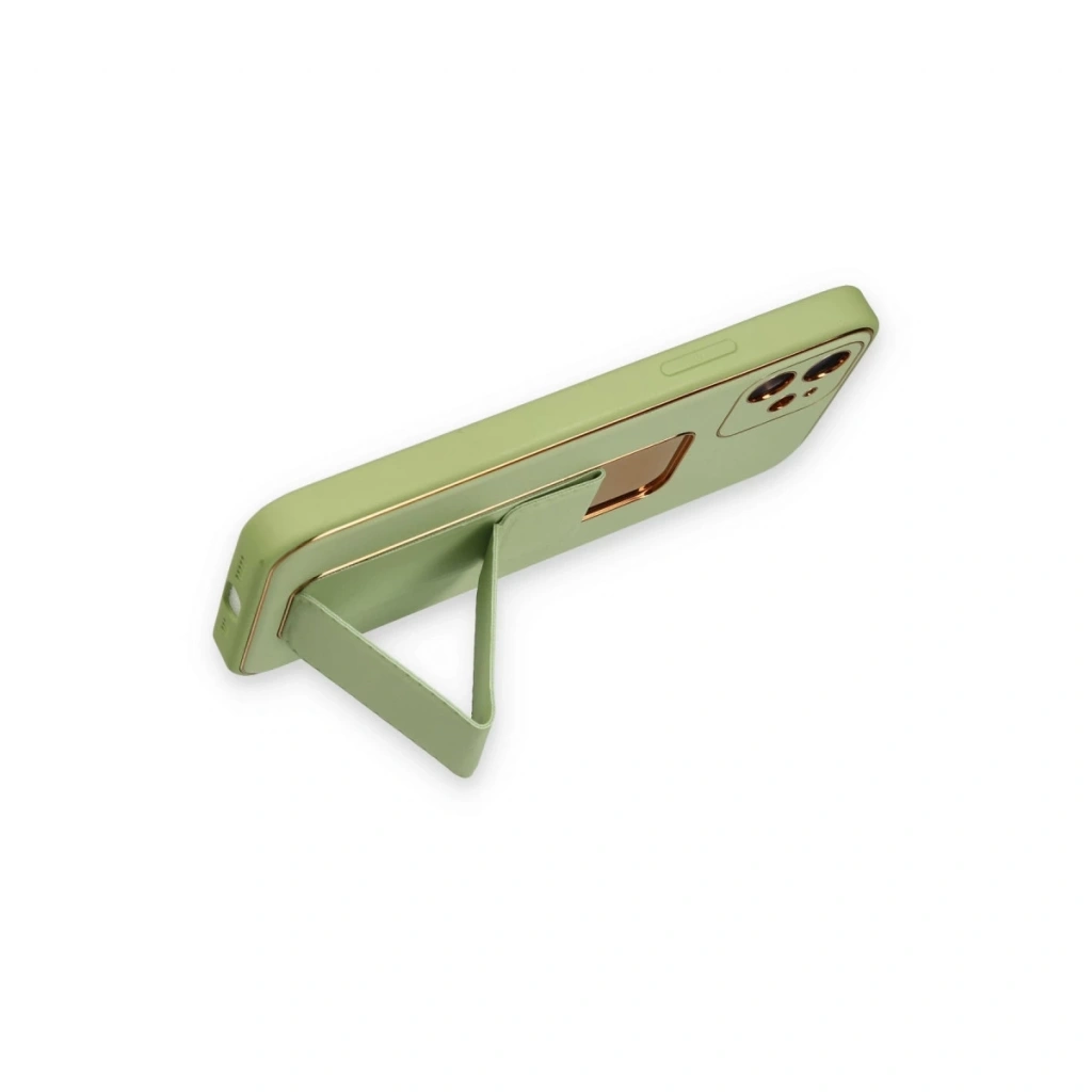İphone 12 Kılıf Coco Deri Standlı Kapak - Su Yeşili