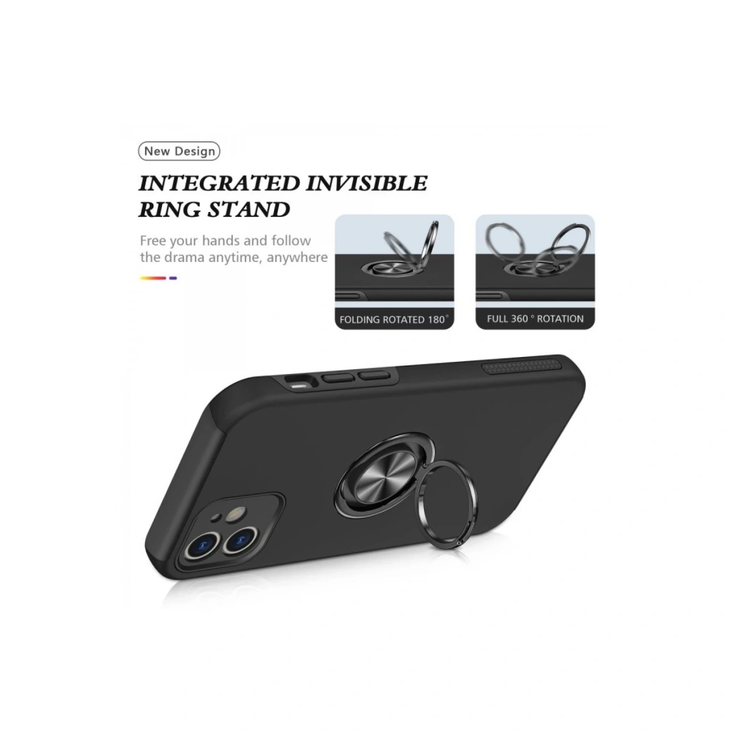 İphone 12 Kılıf Elit Yüzüklü Kapak - Siyah
