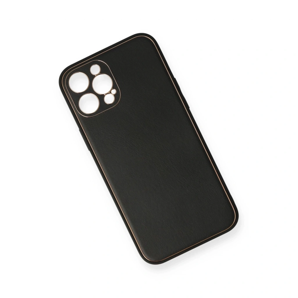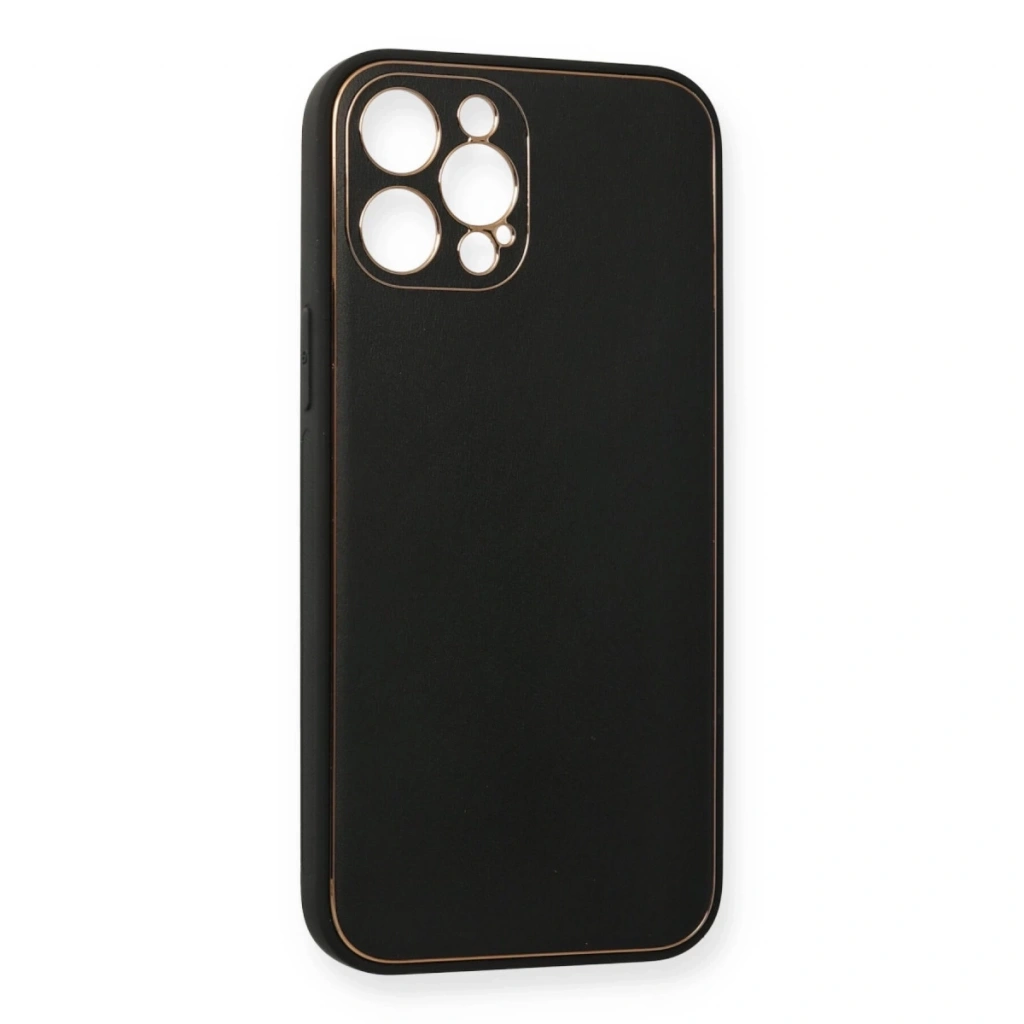 İphone 12 Pro Kılıf Coco Deri Silikon Kapak - Siyah