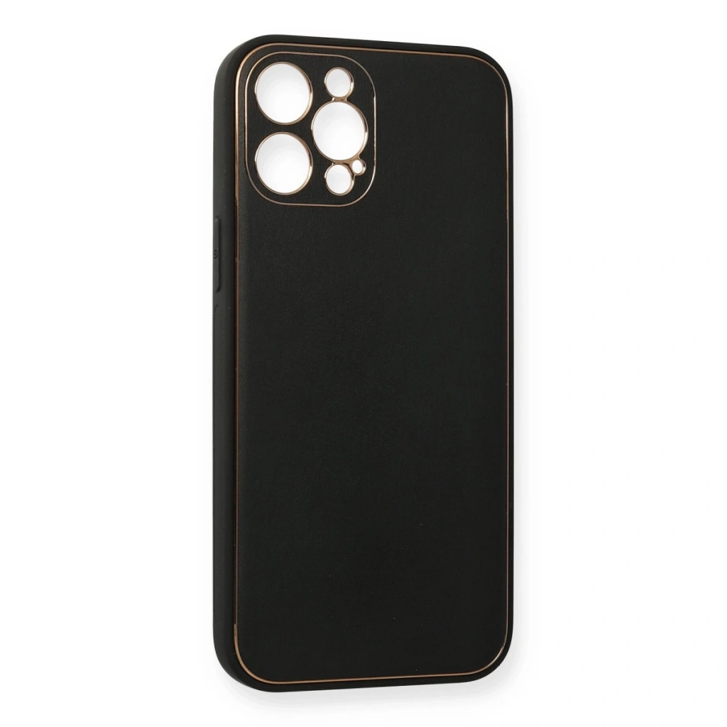 İphone 12 Pro Max Kılıf Coco Deri Silikon Kapak - Siyah