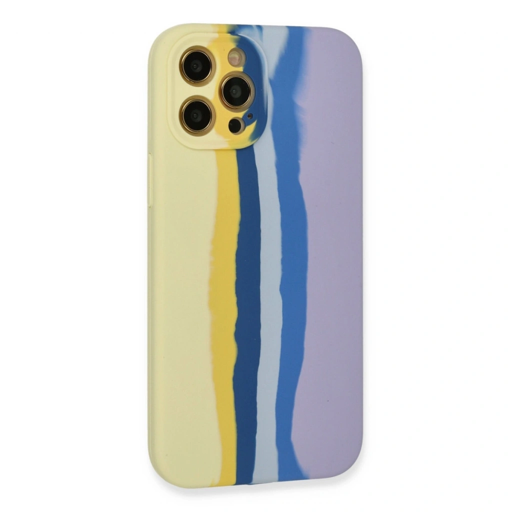 İphone 12 Pro Max Kılıf Ebruli Lansman Silikon - Sarı-lila