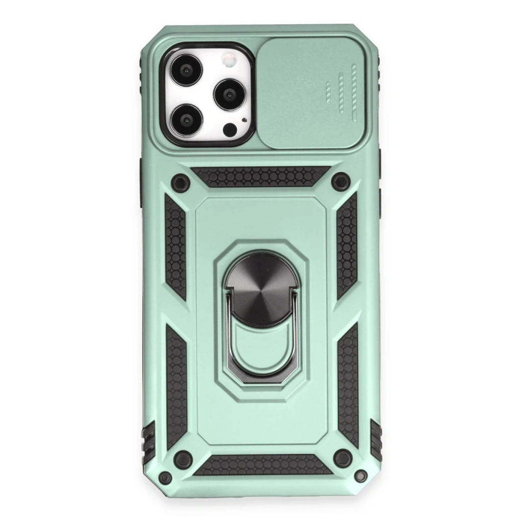 İphone 12 Pro Max Kılıf Pars Lens Yüzüklü Silikon - Yeşil