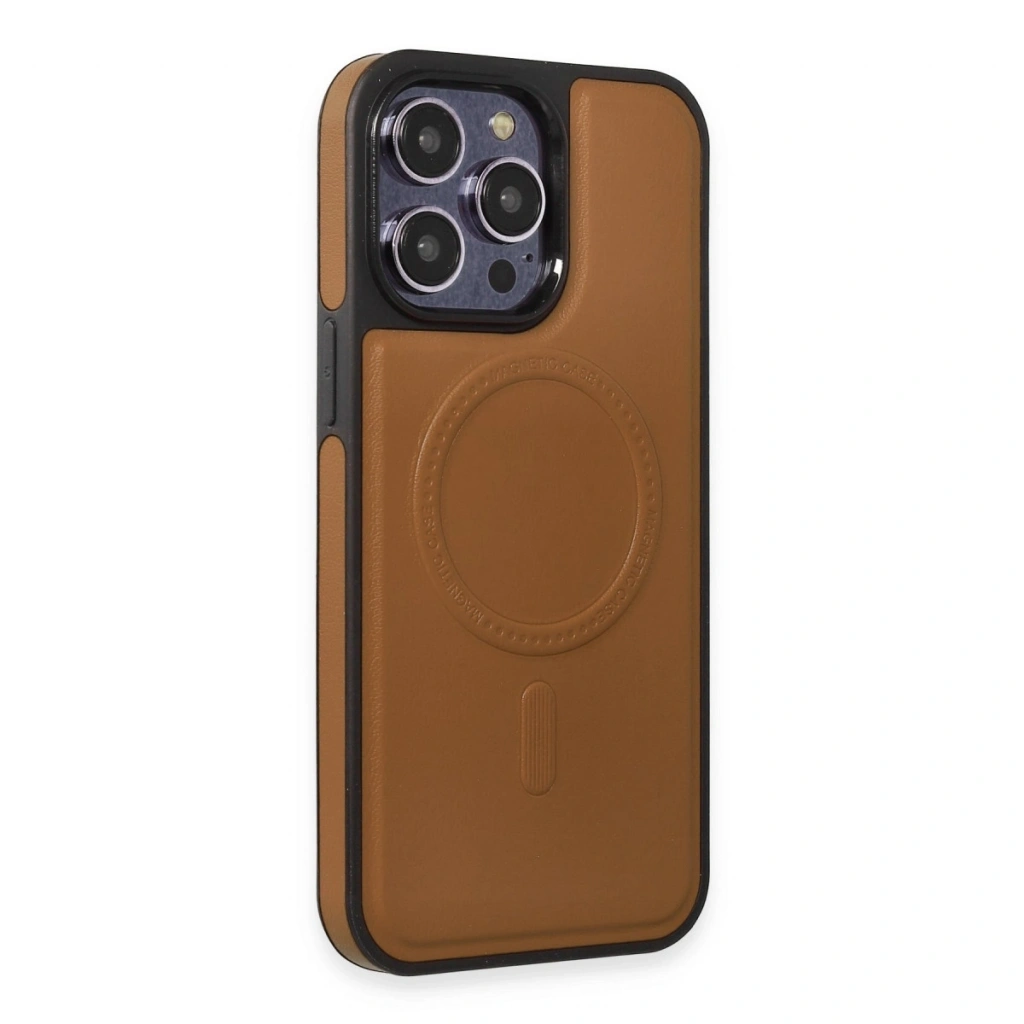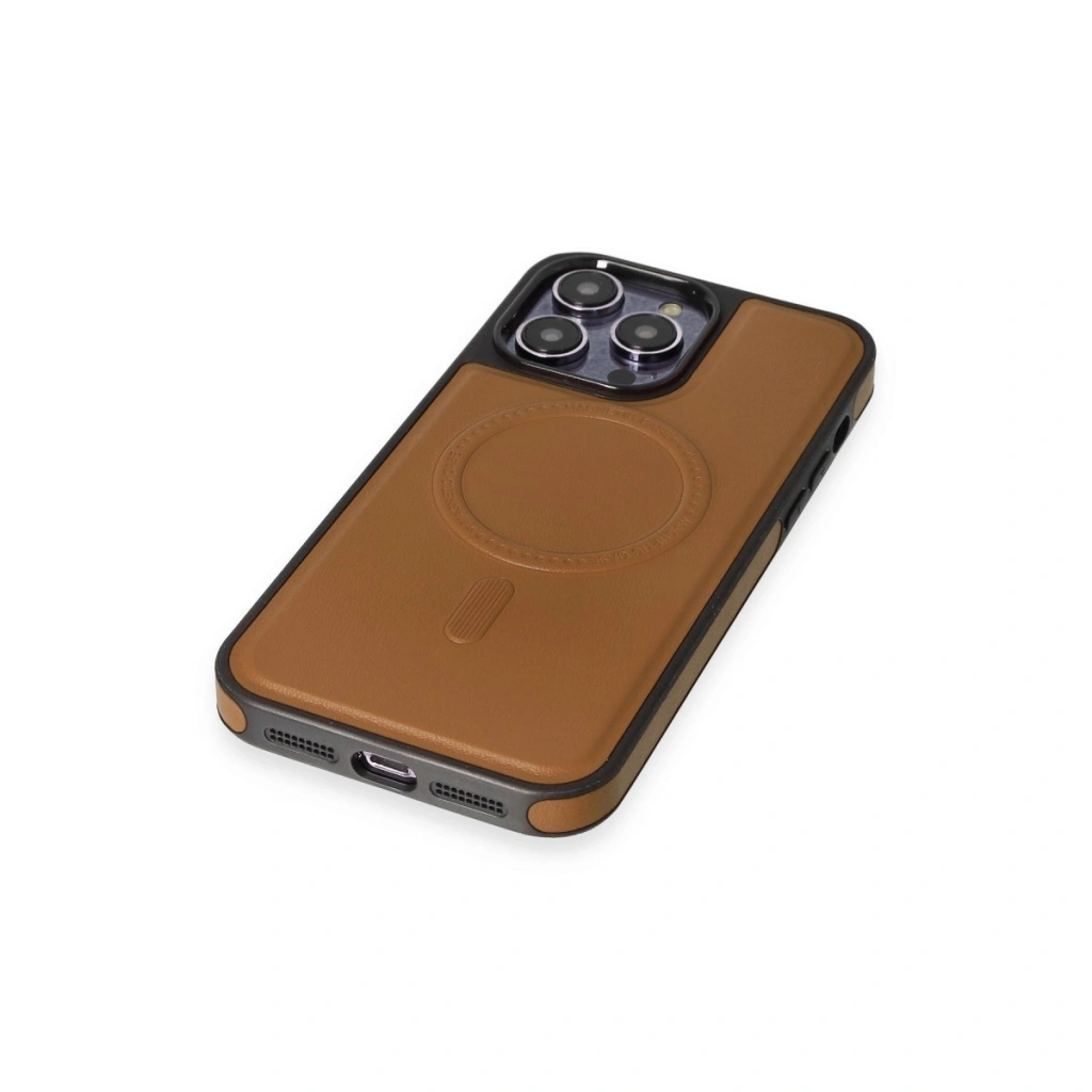 İphone 15 Pro Max Kılıf Ozzi Magsafe Deri Kapak - Taba