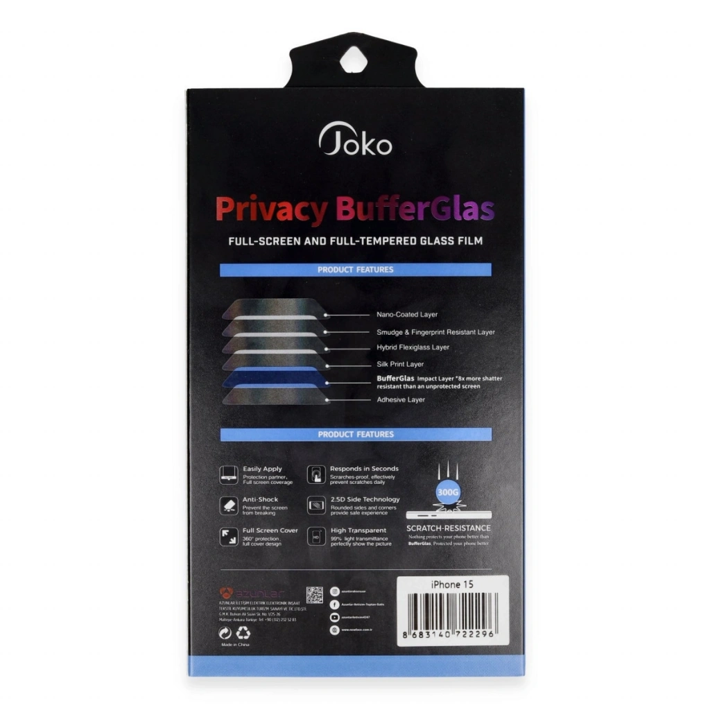 Joko İphone 15 Buffer Hayalet Cam Ekran Koruyucu - Siyah