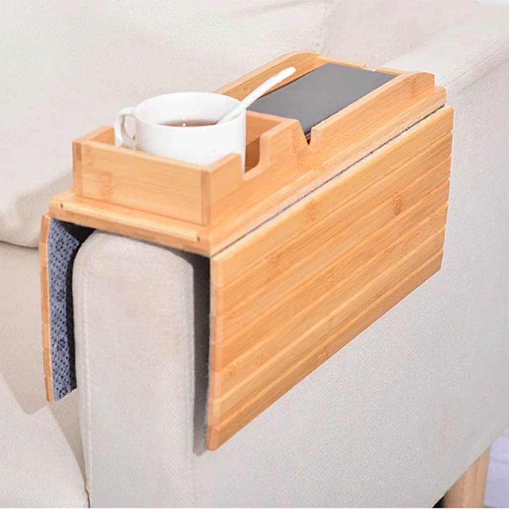 KATLANABİLİR AHŞAP KANEPE TEPSİSİÜrün ÖzellikleriKatlanabilir ahşap kanepe tepsisi, bambu görünümlü dayanıklı ahşap yapısıyla estetik ve işlevselliği bir arada sunar. Kanepe kolçaklarına kolayca yerleştirilebilen bu pratik ürün, alt kısmında bulunan kaydırmaz yüzeyi sayesinde güvenli kullanım imkânı sağlar. Üzerine telefon, kumanda, kitap, çay veya kahve kupası yerleştirilebilir ve koltuk kenarında düzenli bir alan yaratır. Katlanabilir yapısı sayesinde kolayca saklanabilir ve taşınabilir. Doğal görünümü ile ev dekorasyonunuza uyum sağlar. Hem pratik bir yardımcı hem de şık bir tamamlayıcıdır.41,5 x 33,5 cm ölçülerinde olup 1 cm kalınlığa sahiptir.Paket İçeriği1 adet Katlanabilir Ahşap Kanepe Tepsisi