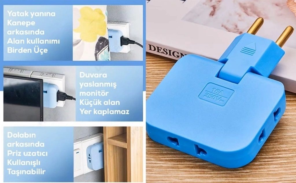 Katlanır Priz 3 Gözlü