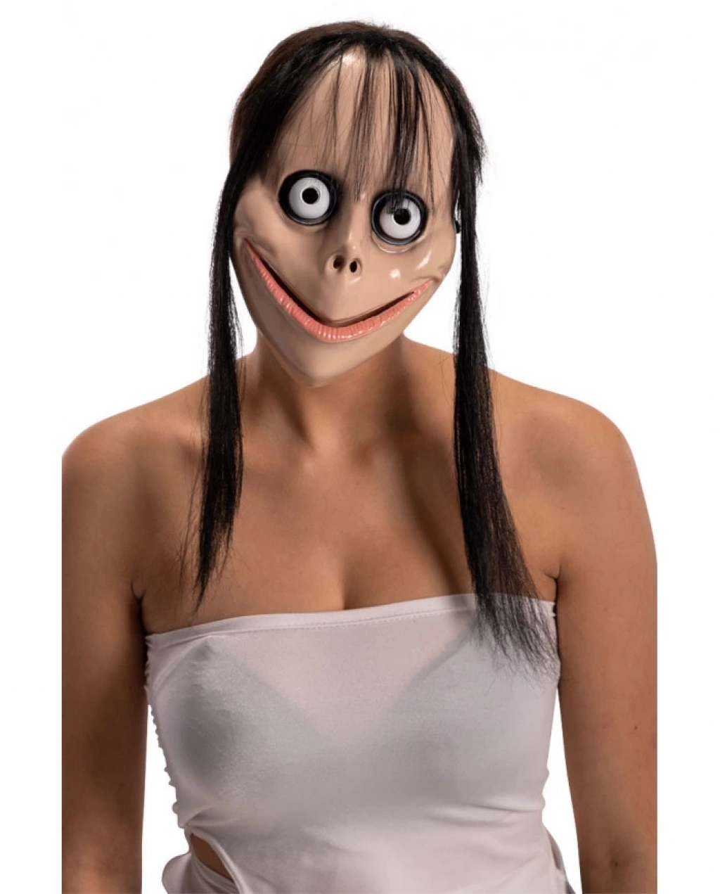 KORKUNÇ ÜRPERTİCİ UZUN SAÇLI MOMO MASKESİÜrün ÖzellikleriKorkunç ve ürpertici Momo maskesi tasarımıGerçekçi uzun saç detayı24x16 cm boyutundaYüksek kaliteli lateks malzemeKorku temalı etkinlikler, Halloween partileri ve korku temalı kostümler için idealPAKET İÇERİĞİ1 adet Korkunç Uzun Saçlı Momo Maskesi (24x16 cm)