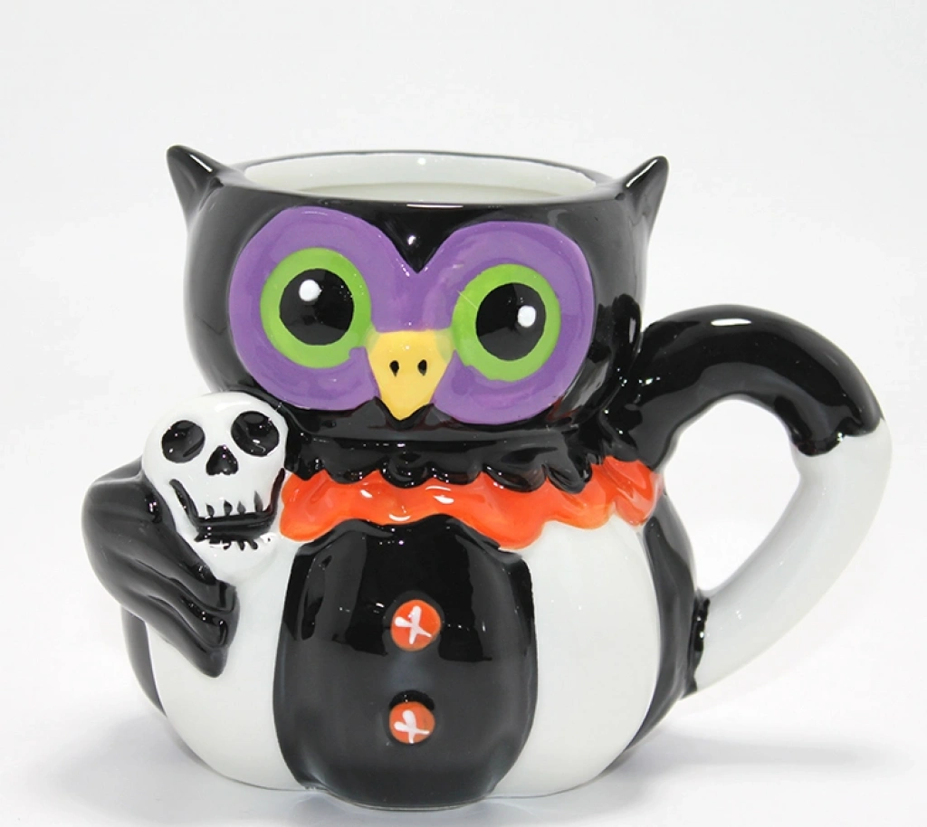 Kurukafa Tutan Baykuş Figürlü Seramik Kupa Bardak