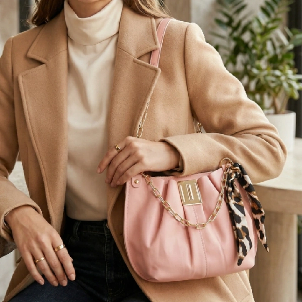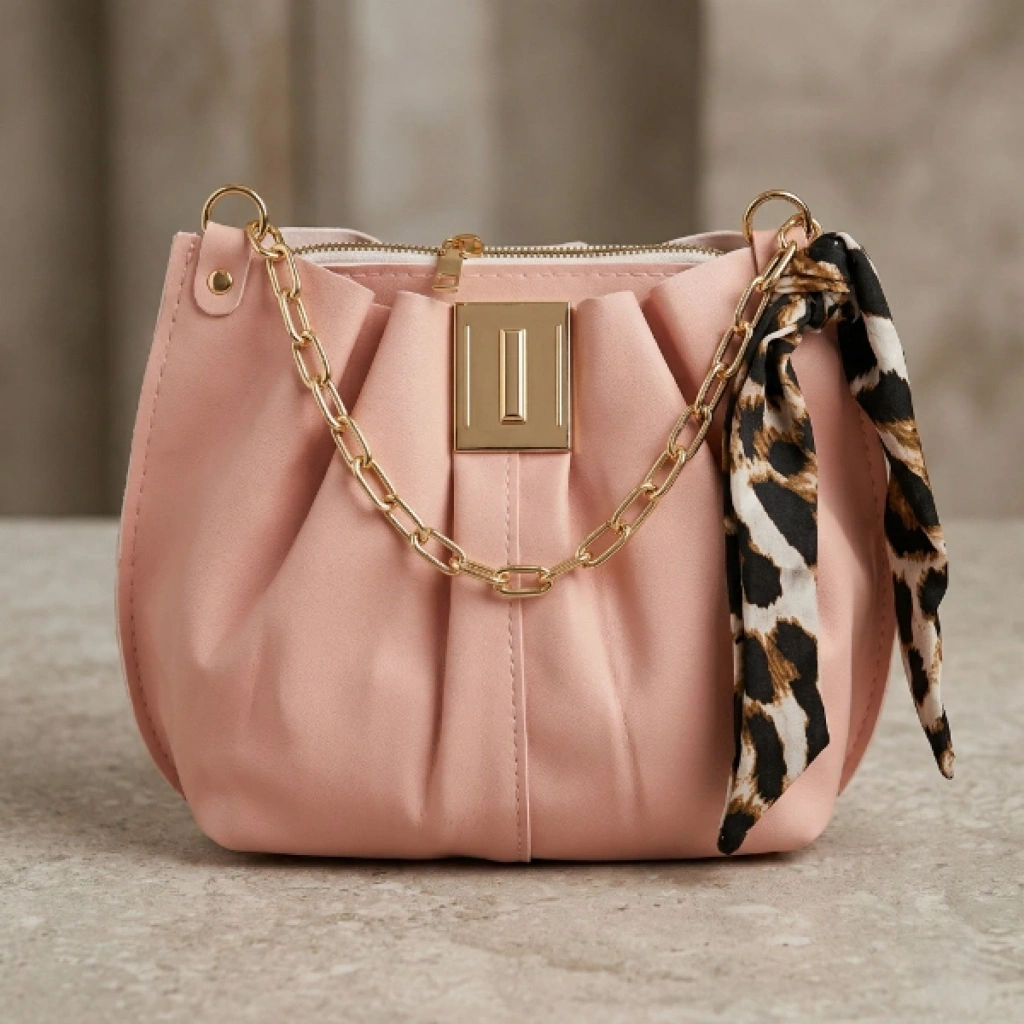 LEOPAR DESENLİ FULAR DETAYLI PUDRA PEMBESİ ÇANTAÜrün ÖzellikleriZarafeti ve modern detayları tek bir tasarımda buluşturun! Leopar Desenli Fular Detaylı Pudra Pembesi Çanta, romantik rengi ve ikonik aksesuarlarıyla stilinize sofistike bir dokunuş katıyor. Yumuşak dokulu yüksek kaliteli suni deri malzemeden üretilen bu çanta, ön yüzündeki büzgü detayları ve altın rengi metal tokasıyla göz doldurur. Tasarımın en dikkat çekici parçası olan leopar desenli fular aksesuarı ve şık altın rengi zincir askısı, çantaya hem klasik hem de trend bir hava kazandırır. İç hacmiyle de kullanıcı dostu olan bu model; üç ayrı bölmeden oluşur ve orta bölmesi güvenli kullanım için fermuarlı olarak tasarlanmıştır. Günlük kombinlerinizden şık davetlere kadar her anınıza eşlik edecek bu çanta, pudra pembesinin huzur veren tonuyla gardırobunuzun en favori parçası olmaya aday.Ürün Teknik ÖzellikleriÖzellikAçıklamaRenkPudra PembesiMalzemeYüksek Kaliteli Yumuşak Suni DeriBölme Yapısı3 Bölmeli (Orta bölme fermuarlı, yan bölmeler mıknatıslı/açık)AksesuarLeopar Desenli Saten Fular & Altın Rengi Zincir AskıKilit MekanizmasıAltın Rengi Metal Toka Detayı ve İç FermuarTasarımÖn Yüz Büzgülü Estetik FormKullanım ŞekliOmuz Çantası ve El ÇantasıPaket İçeriği1 Adet Leopar Desenli Fular Detaylı Pudra Pembesi Kadın Çantası.