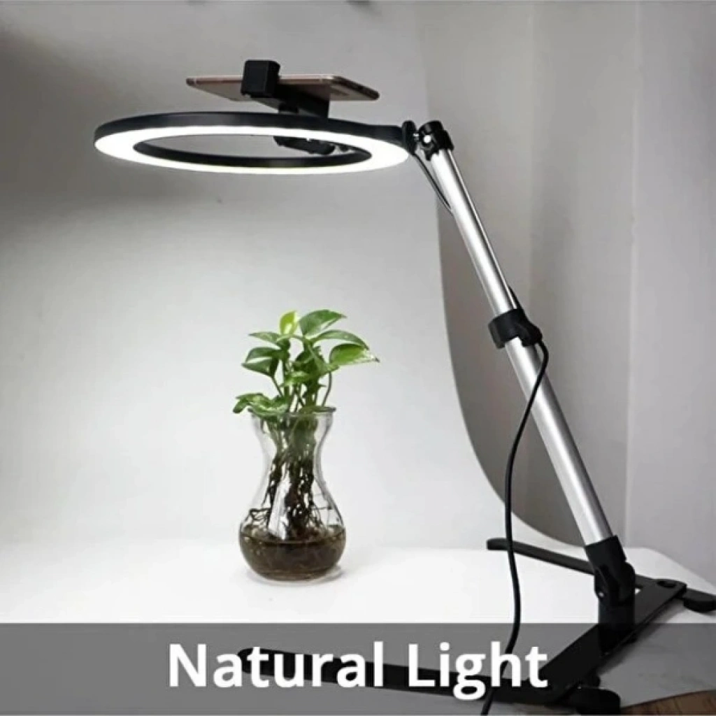 MASAÜSTÜ ÇEKİM IŞIĞIÜrün ÖzellikleriMasaüstü çekim ışığı, içerik üreticileri, online satış yapanlar ve günlük kullanımda net aydınlatma ihtiyacı duyanlar için pratik ve profesyonel bir çözüm sunar. I şeklindeki ayak tasarımı sayesinde masa üzerinde minimum alan kaplar ve dengeli bir kullanım sağlar. Yüksekliği ayarlanabilir yapısı ile 25 ila 45 cm arasında konumlandırılabilir, böylece farklı çekim açılarına ve masa düzenlerine kolayca uyum sağlar.180 derece dönebilen başlığı sayesinde ışık açısı istenilen yönde ayarlanabilir ve homojen bir aydınlatma elde edilir. Ayarlanabilir telefon klipsi, farklı telefon modelleriyle uyumlu olup 180 derece hareket kabiliyeti sunarak video, fotoğraf, canlı yayın ve görüntülü görüşmelerde ideal çekim açısını yakalamanıza yardımcı olur. Masaüstü kullanım için tasarlanan bu çekim ışığı, ürün çekimleri, sosyal medya içerikleri, makyaj videoları ve online toplantılar için net, gölgesiz ve dengeli bir ışık sağlar. Dayanıklı gövdesi ve kolay kurulum özelliği sayesinde hem evde hem ofiste uzun süreli kullanım için uygundur.Paket İçeriği1 adet Masaüstü Çekim Işığı