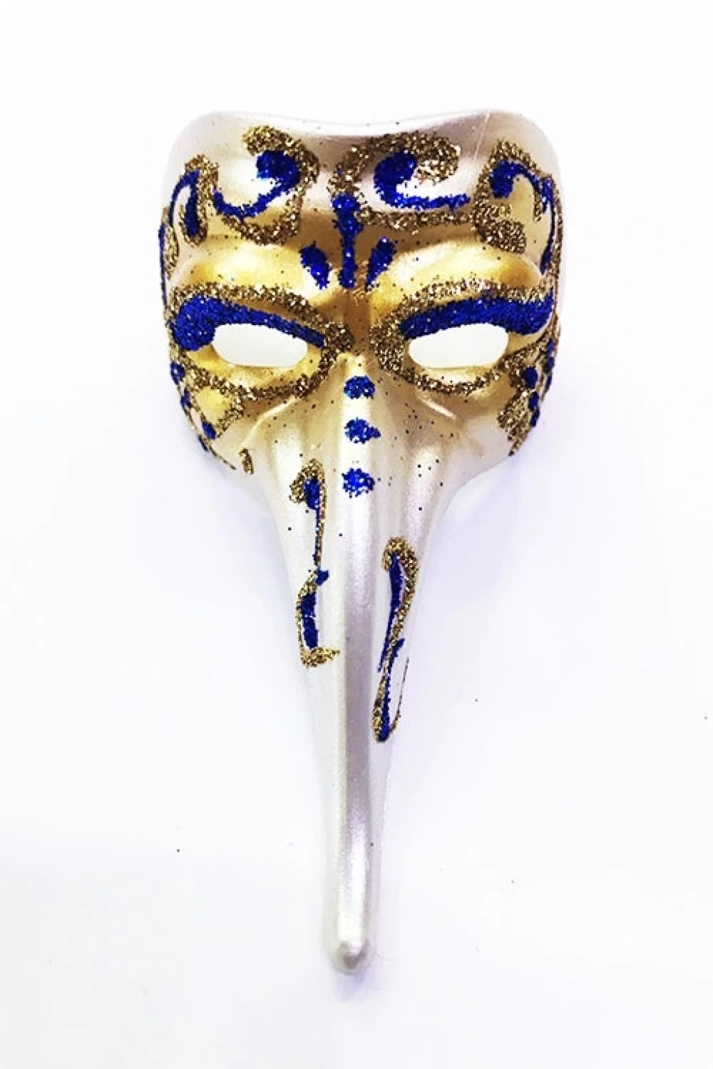 Mavi Renk İşlemeli Seramik Malzemeden İmal Venedik Uzun Maske Magnet