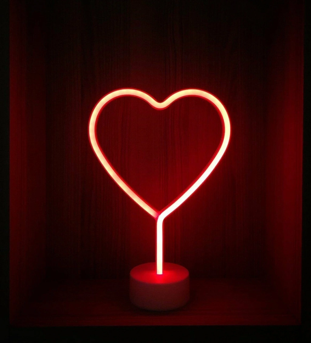 Neon Işıklı Kalp Masa Gece Lambası Pil+usb