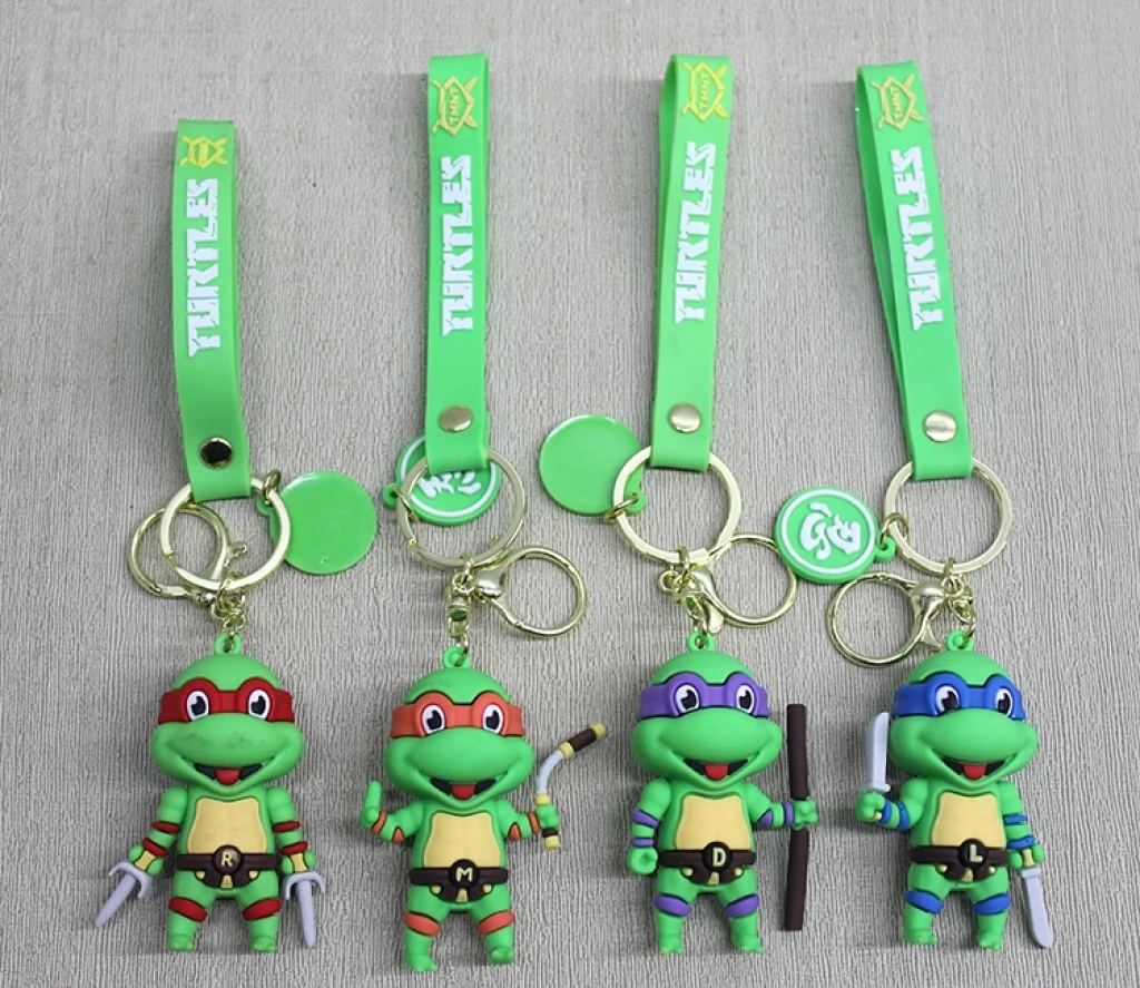 NİNJA KAPLUMBAĞALAR SİLİKON ANAHTARLIKÜrün ÖzellikleriPopüler çizgi film karakterlerinden oluşan Ninja Kaplumbağalar silikon anahtarlık, dayanıklı ve esnek yapısıyla uzun süreli kullanım sunar. Renkli figür tasarımları, yeşil silikon taşıma askısıyla uyum içindedir. Metal halka ve klipsi sayesinde çantalara, anahtarlara ya da cüzdanlara kolaylıkla takılabilir. Leonardo, Michelangelo, Donatello ve Raphael karakterlerinden oluşan bu ürün, karışık şekilde gönderilmektedir. Koleksiyonluk veya hediye olarak da ideal bir üründür.Paket İçeriği1 adet Ninja Kaplumbağalar silikon anahtarlık