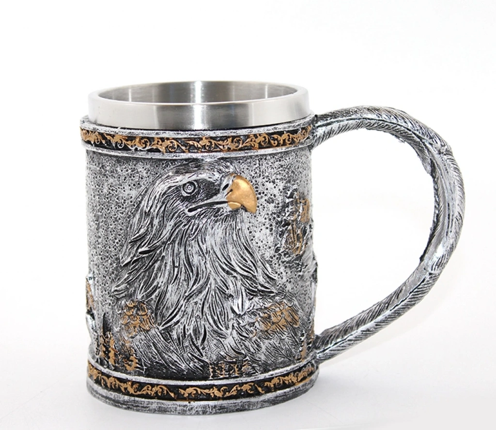 Paslanmaz Çelik Tasarım Kupa BardakHem bir koleksiyon parçası hem de vazgeçilmez bir kullanım eşyası! Paslanmaz Çelik Tasarım Kupa Bardak, heybetli yapısı ve detaylı dış tasarımıyla masanıza karakter katıyor. 12 x 15 cm ölçülerindeki geniş ağız çapı ve yüksek formu, özellikle uzun süreli içecek keyfi isteyenler için maksimum hacim sağlar. İç kısmındaki birinci sınıf paslanmaz çelik hazne, içeceklerinizin ısısını korurken metalin dayanıklılığını porselenin şıklığıyla yarışır bir formda sunar. Dış yüzeyindeki tematik kabartmalar ve güçlü kulp yapısı, bu kupayı sadece bir bardak değil, bir güç simgesi haline getiriyor.Ürün ÖzellikleriÖzellikDetayÜrün AdıPaslanmaz Çelik Tasarım Kupaİç MalzemeYüksek Kaliteli Gıda Sınıfı Paslanmaz ÇelikDış MalzemeDayanıklı 3D Reçine / Polimer KaplamaÖlçüler12 cm (Çap) x 15 cm (Yükseklik)FonksiyonIsı Yalıtımlı İç HazneKapasiteGeniş İç Hacim (Büyük Boy)KullanımKahve, Bira, Çay ve Soğuk Meşrubatlar İçin UygunStilEpik, Endüstriyel ve Dekoratif
