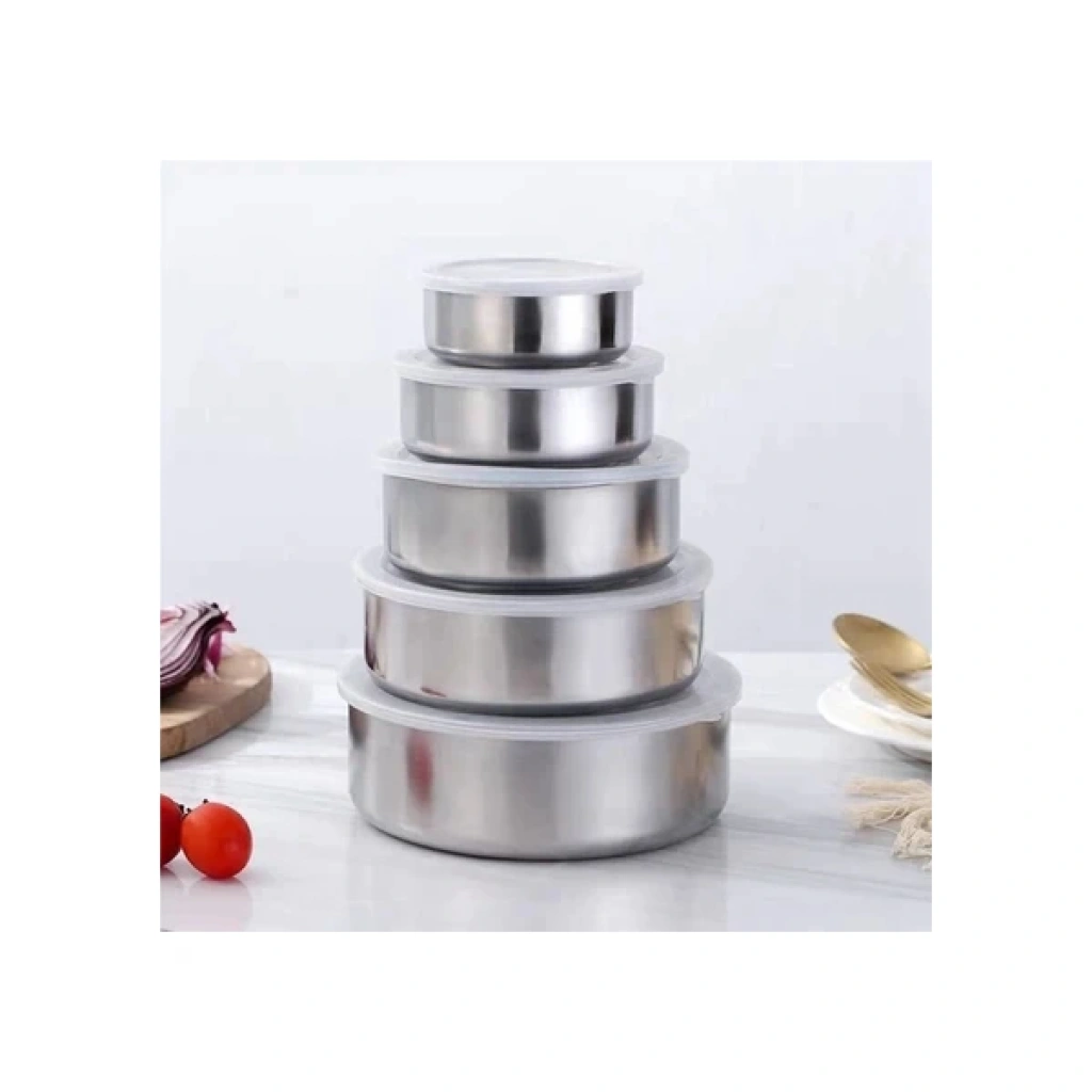 PASLANMAZ ÇELİK YEMEK SAKLAMA KABI SETİÜrün ÖzellikleriYüksek kaliteli paslanmaz çelikten üretilmiştir, uzun ömürlü kullanım sunar ve sağlıklı gıda saklama imkanı sağlar.5 farklı boyutta saklama kabı içerir (10 cm, 12 cm, 14 cm, 16 cm, 18 cm). Gıdaların tazeliğini koruyan ve hava geçirmez kapaklara sahiptir. Gıda saklama, taşıma ve buzdolabında düzen sağlamak için idealdir.Paslanmaz çelik yüzeyi sayesinde kolayca temizlenebilir, hijyenik bir kullanım sağlar. Mutfağınıza şıklık katar. Yemek hazırlığı sonrası artan gıdaların saklanması, meyve, sebze, tahıl ve bakliyat gibi gıdaların düzenli bir şekilde muhafazası, piknik, seyahat veya iş yerinde gıda taşıma için ideal bir saklama kabı setidir. Bu set, hem sağlıklı hem de pratik bir saklama çözümü sunar. Paslanmaz çelik yapısı sayesinde uzun ömürlüdür ve farklı boyut seçenekleriyle her ihtiyaca uygundur.Paket İçeriği1 adet Paslanmaz Çelik Saklama Kabı Seti.
