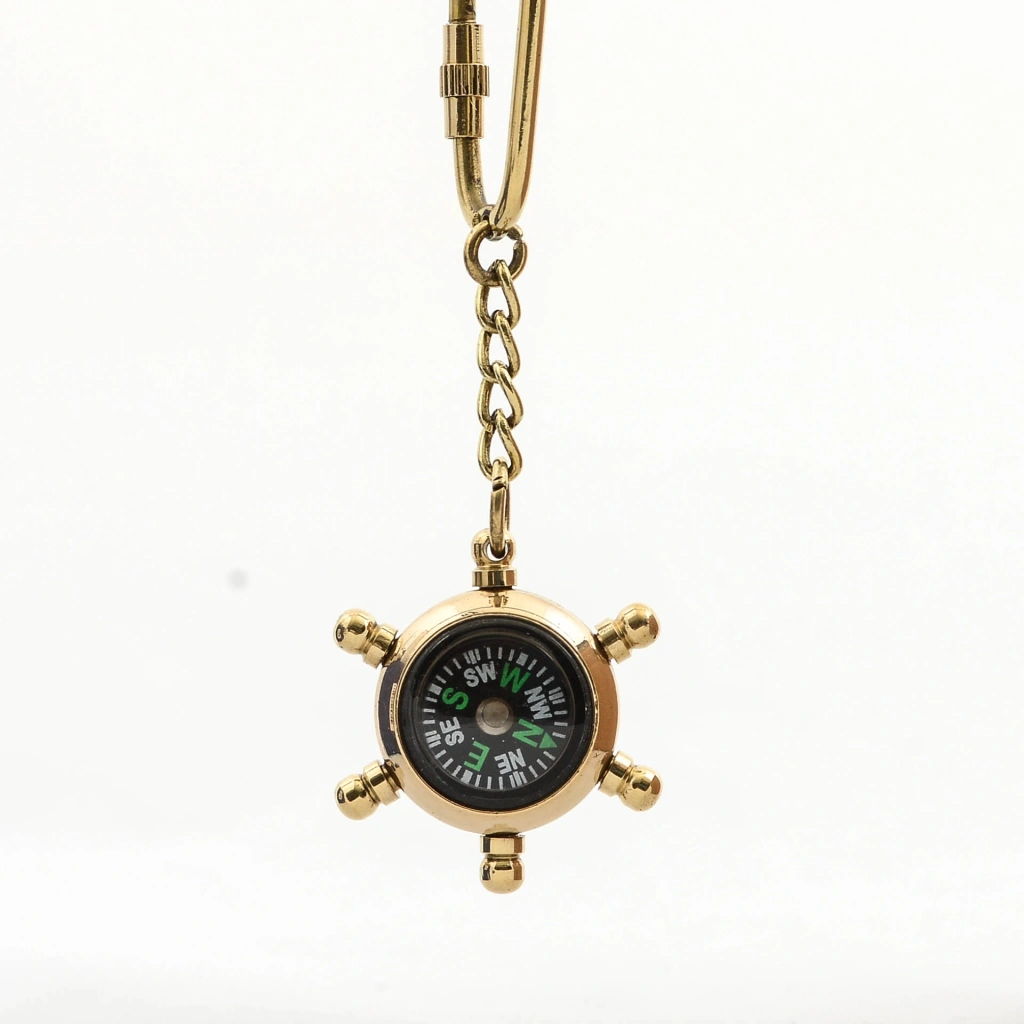 Pirinç Dümen Tasarımlı Pusula Anahtarlık
